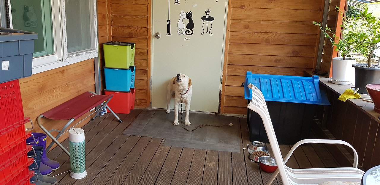 가게에 놀러온 손님의 강아지였고, 그 옆에는
