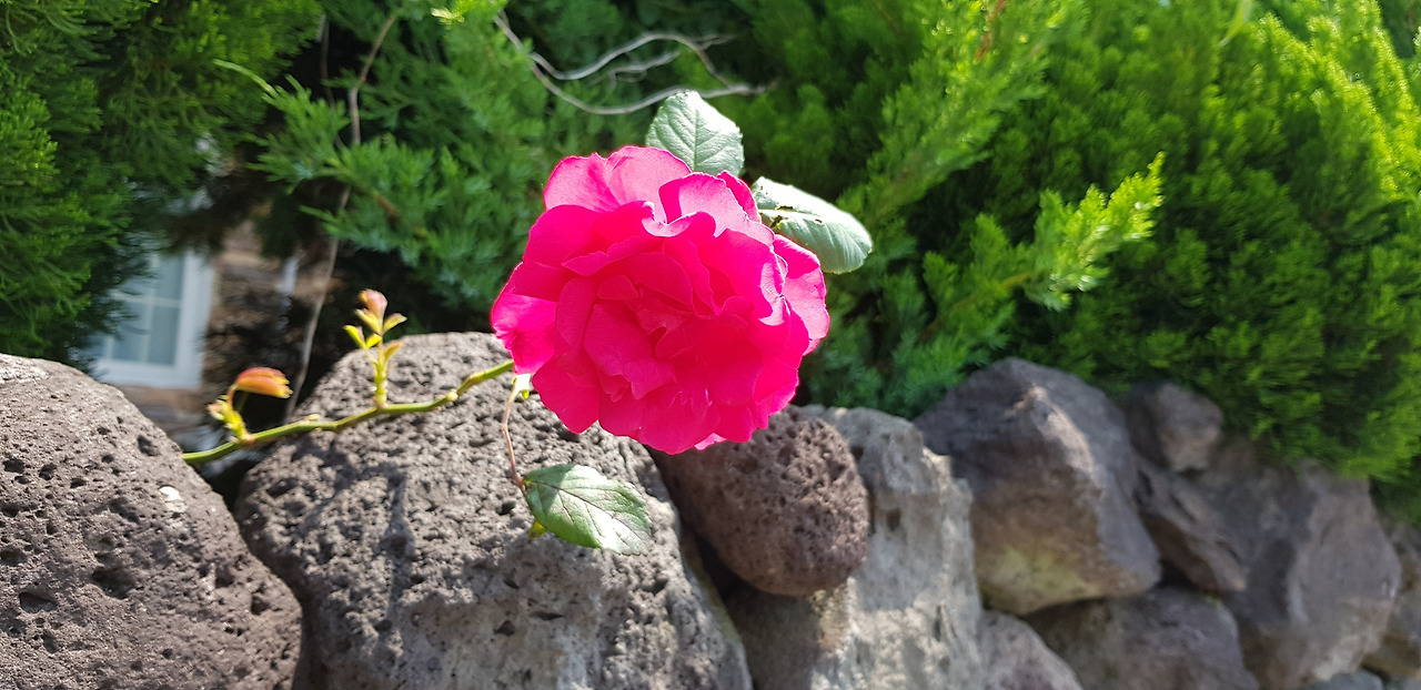 돌담에 넝쿨을 올리기엔 고되고 힘들었던걸까, 땅에 있을 꽃들이 아닌데 콕콕 박힌듯 피어 있어 기이하면서도 안쓰러웠다.