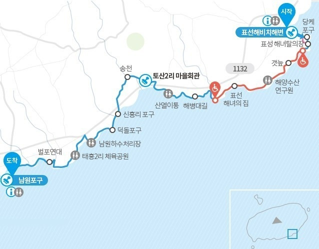 올레4코스는 장장 19km의 긴 거리지만 노선 조정을 거쳐 누구나 쉽게 걸을 수 있는 코스로 바뀐 거리라고 한다. (원래는 더 길었단 소리.)