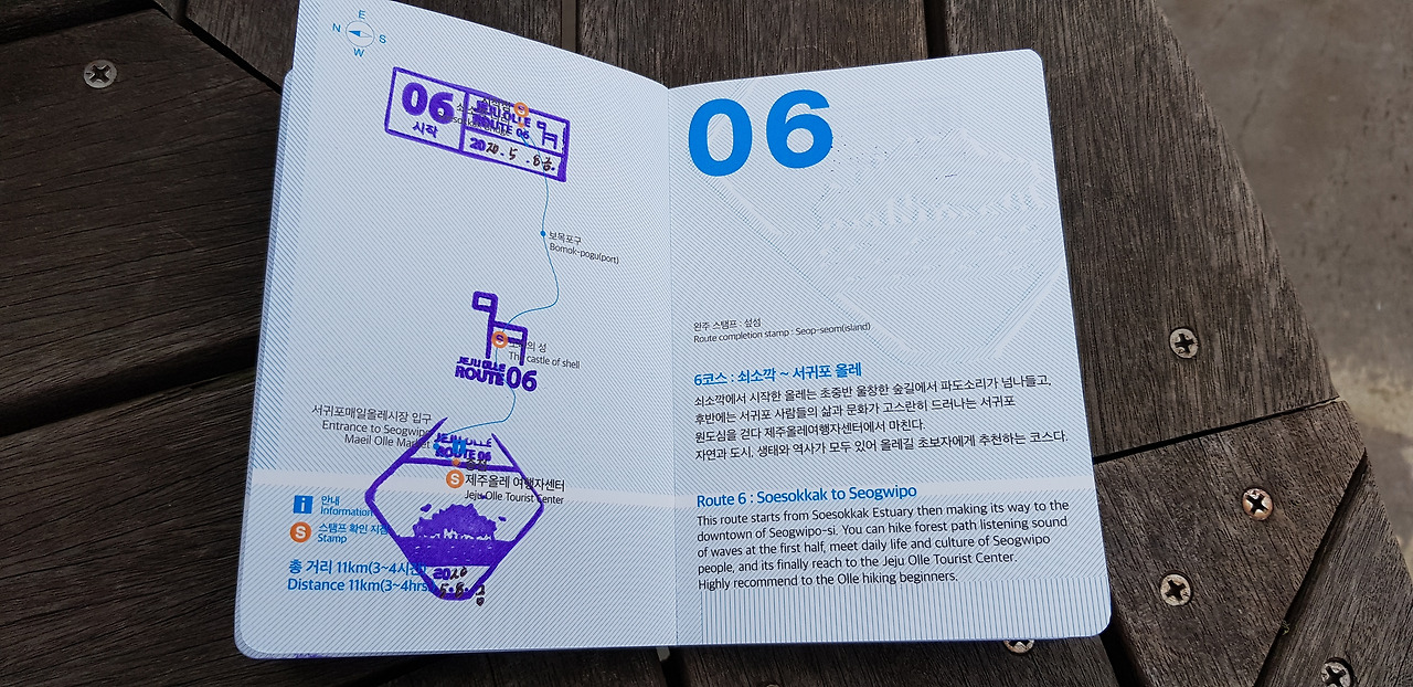 쇠소깍다리에서 시작하여 올레길 완주증서를 받을 수 있는 여행자센터에 도착하는 6코스를 걸었다ㆍ