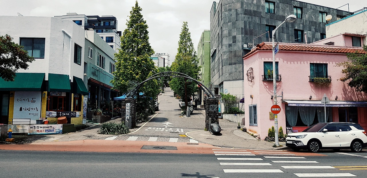 정방폭포, 서귀진지를 지나면 서귀포 도심으로 진입하면서 이중섭거리를 통과한다.