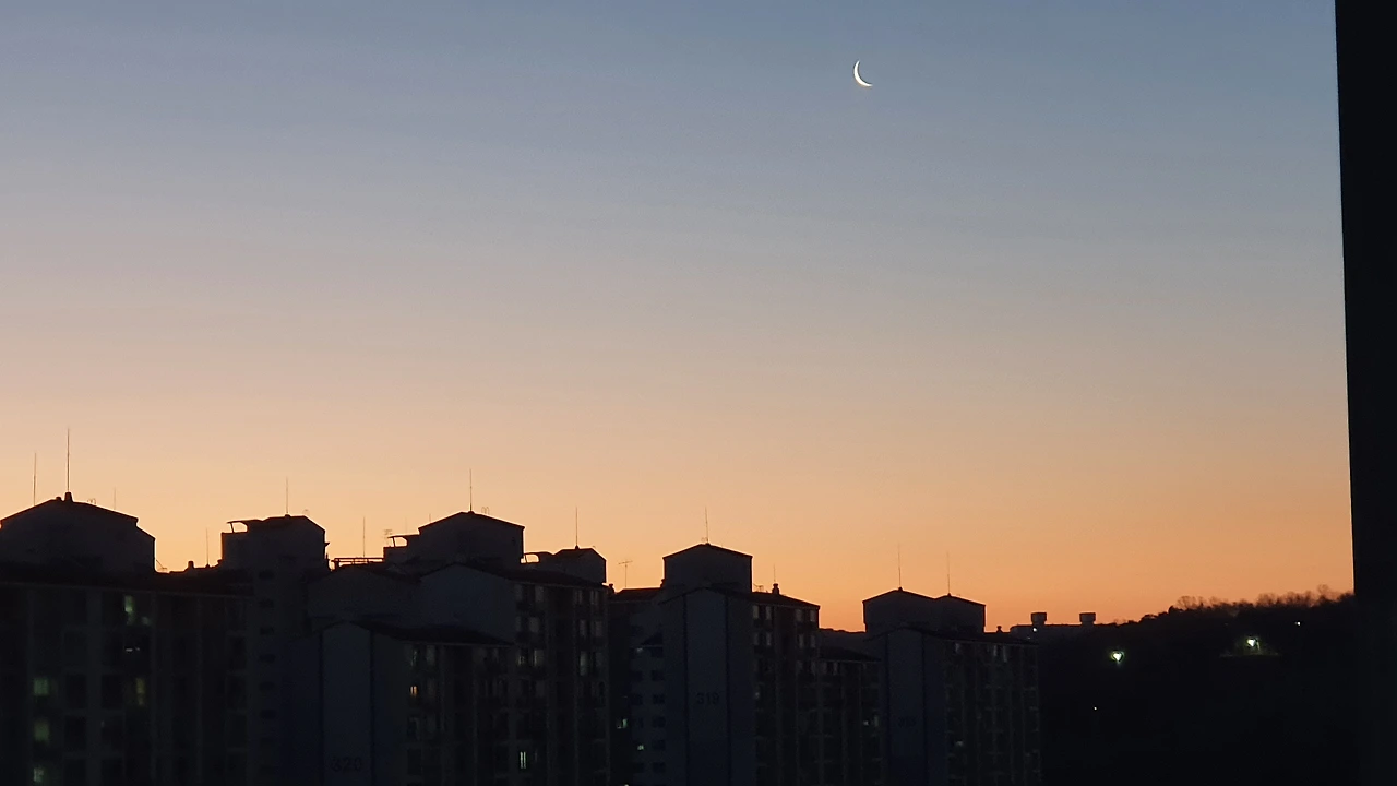 달이 걸린 찰나의 순간을 찍어 이 달이 그믐달이라고 알려준다.