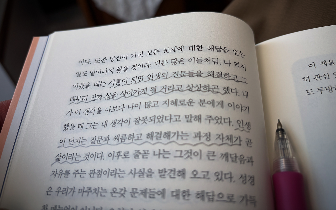인생의 해묵은 질문들은 마침내 답을 찾고, 발목 잡던 문제들로부터는 홀가분하게 자유로워질 것이라 막연히 믿었습니다. 그때쯤이면 세상을 지혜롭게 바라보고, 같은 상황 속에서도 전혀 다른 해법을 찾아낼 수 있으리라는 순진한 기대가 있었던 것 같습니다.