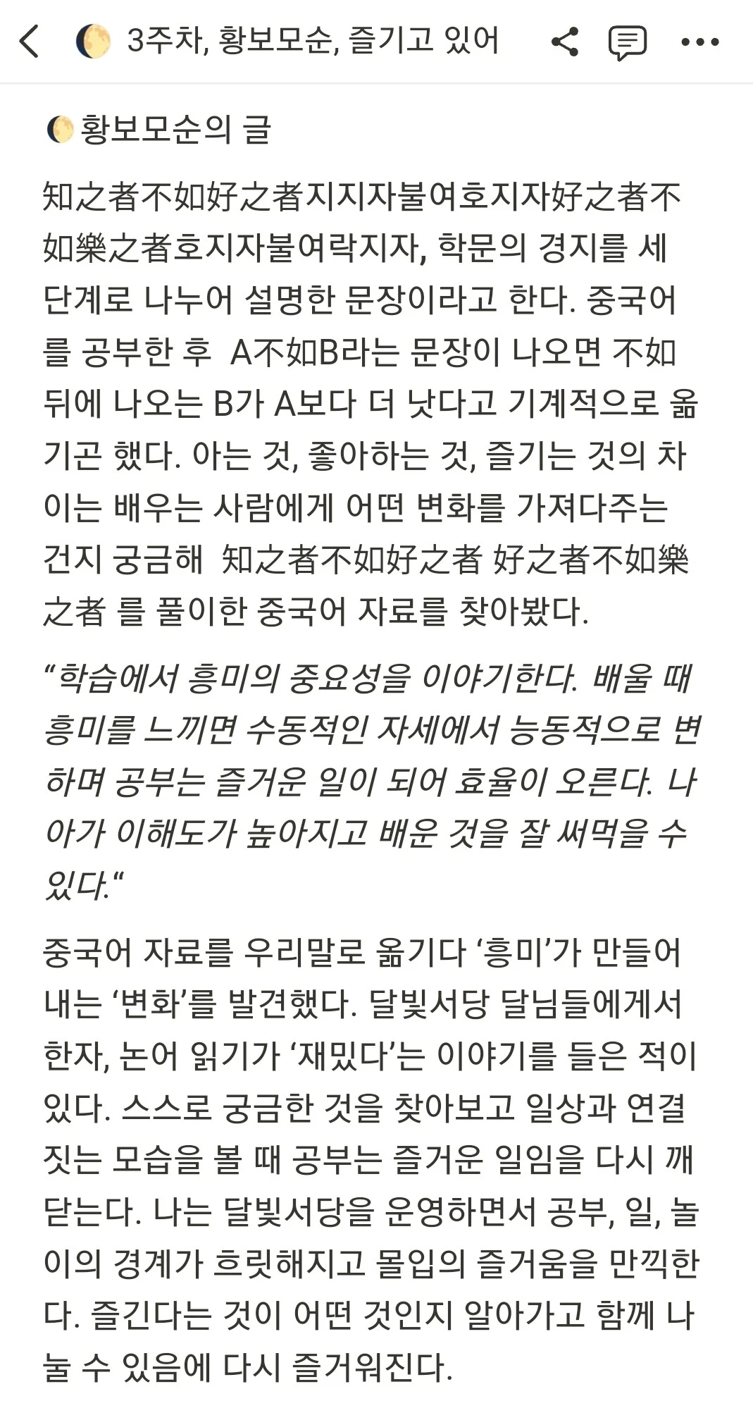 가장 나다운 모습으로 사람들이 나를 기억하고 불러줄 때그게 가장 행복할거야...알 수 없는 미래를 걱정하지 말고현재에 충실하라고 해석해봤어달빛서당 8기 달님의 이야기 중에서