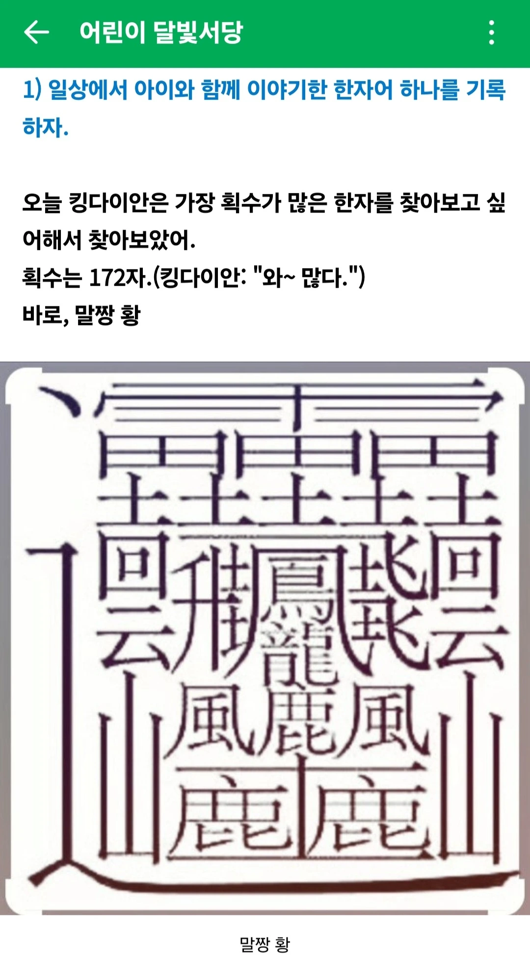 172획인 한자 말짱 황을 보고