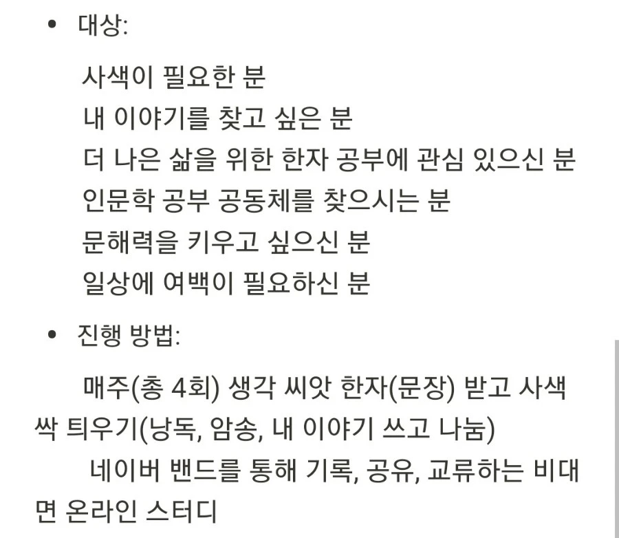 '한자 인문학 스터디'라는 무형의 아이디어에
