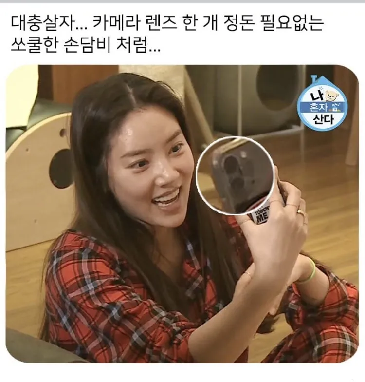 손담비의 핸드폰과 케이스가 서로 다른 기종이라는 것이고 그러다 보니 핸드폰 카메라 렌즈 하나는 쿨하게 덮어버리고 쓰고 있는 것이다.