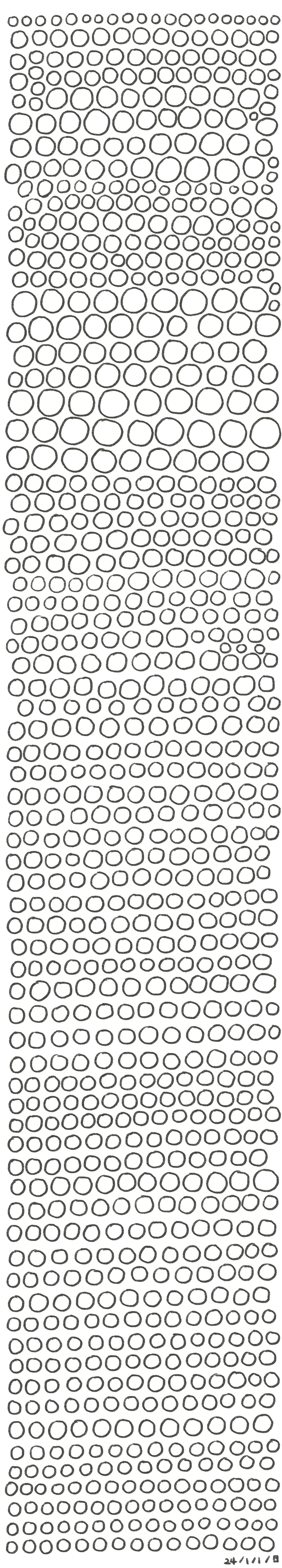 그러다가 아무 생각 없이 그냥 동그라미 그리고, 이전에 그린 크기와 비슷하게, 일정한 간격으로 그렸다.