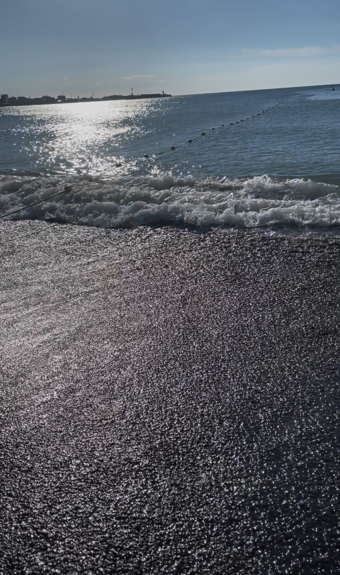 해변의 검은 모래는 입자가 고왔다. 맨발에 생채기 하나 낼 수 없을 정도로 부드러운 작은 입자였다. 다만 햇빛에 달궈져 있어서 뜨끈뜨끈했다. 한 자리에 쭉 누워서 모래찜질을 하면 몸이 삭 풀릴 것 같은, 노곤함을 주는 따뜻함이었다. 부모님은 그 뜨끈함을 즐기셨고, 나는 바다 앞으로 갔다. 샌들을 벗어서 손에 쥐고 물에 젖어 단단한 모래 위를 걸었다. 멀리서 밀려온 파도가 발등을 쓸었다. 밀려들어오고, 쓸려나가고, 밀려오고, 쓸려가고... 파도가 오고 가는 것만 봐도 1시간은 족히 구경할 수 있을 것 같았다. 먼바다서부터 반짝이는 윤슬, 파도의 포말, 바람에 의해 변화하는 바다의 표면. 의자를 가져와서 발을 담근 채로 한참을 앉아있고 싶었다.