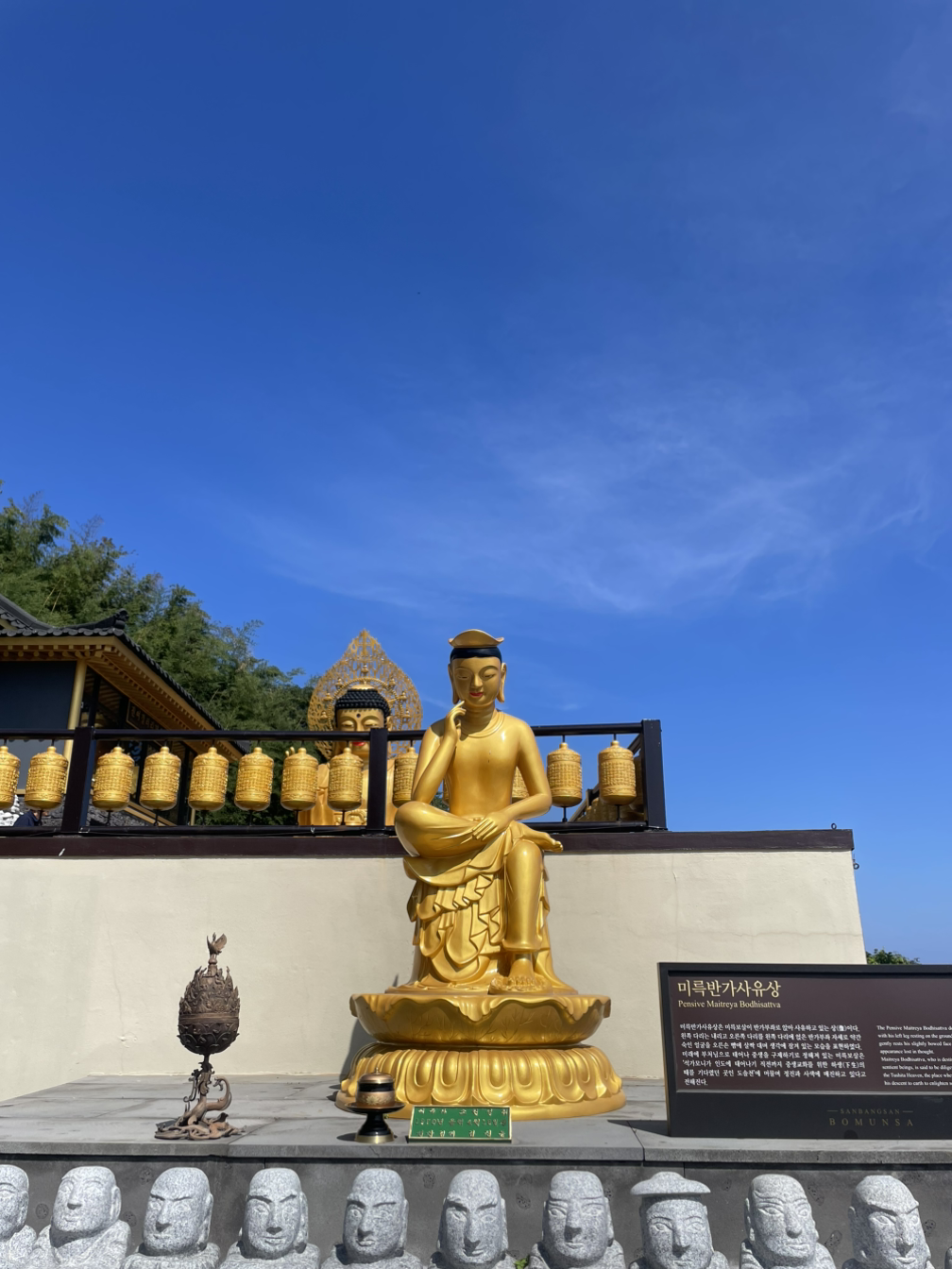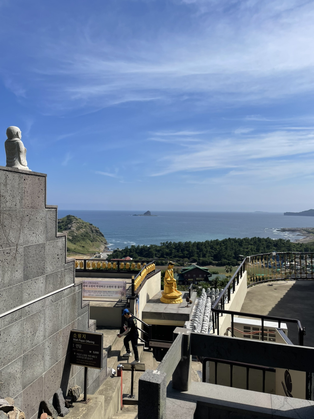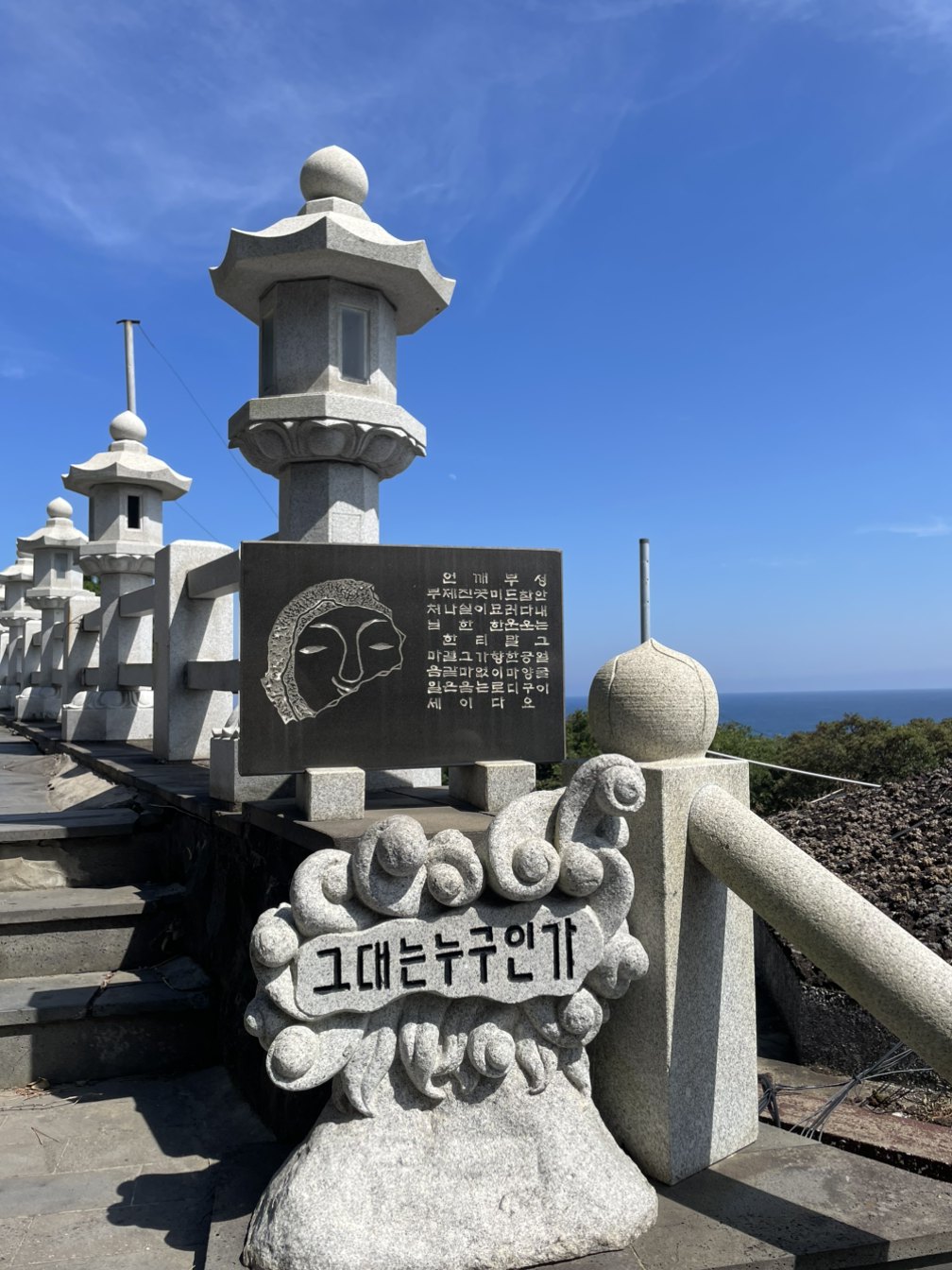 산방산 보문사에만 가도 뻥 뚫린 바다 수평선이 보인다길래 올라가서 한참 구경하고 싶었으나... 날씨가 매우 뜨거운 날이었다. 양산을 써도, 가만히 서 있기만 해도 땀이 줄줄 나는 날씨였다. 그늘 아래 있어도 땀이 나는 날씨임에도 입장료를 내고 불상이 있는 곳까지 조금 더 올라가 보았다.