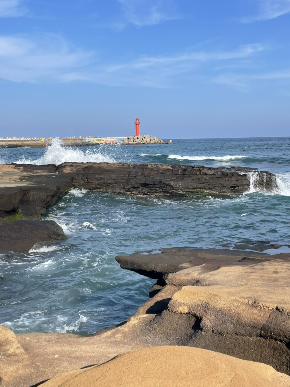 이번 여행을 하면서 두 가지는 하고 오자는 게 있었다. 첫 번째는 오메기떡과 땅콩아이스크림, 땅콩막걸리를 먹고 오기, 두 번째는 바닷물에 몸 담그고 오기. 캐리어에 래시가드를 챙겼다.