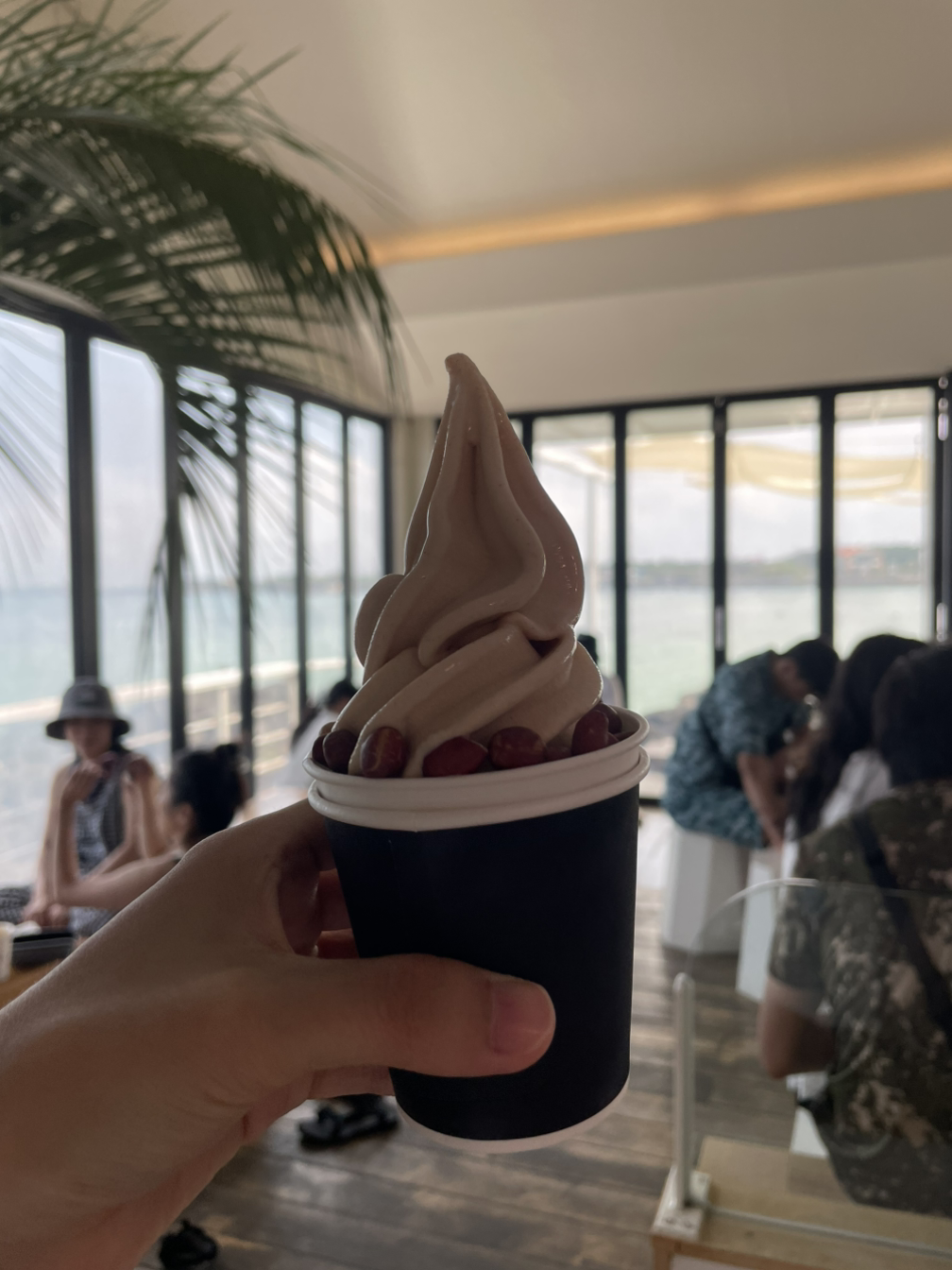 우도 땅콩 아이스크림과 우도 땅콩크림라테, 레모네이드, 땅콩 바스크 치즈케이크를 먹었다. 생각보다 땅콩 아이스크림은 내 취향이 아니었다. 물론 맛있긴 한데, 땅콩크림라테가 더 맛있었다. 한창 휴가철인지라 사람들이 줄 서서 좌석이 나길 기다리고 있어서 먹고 바로 나왔다. 더운 날 달콤한 게 들어가니 성격이 좀 느긋하니 고와지는 게 있었다.