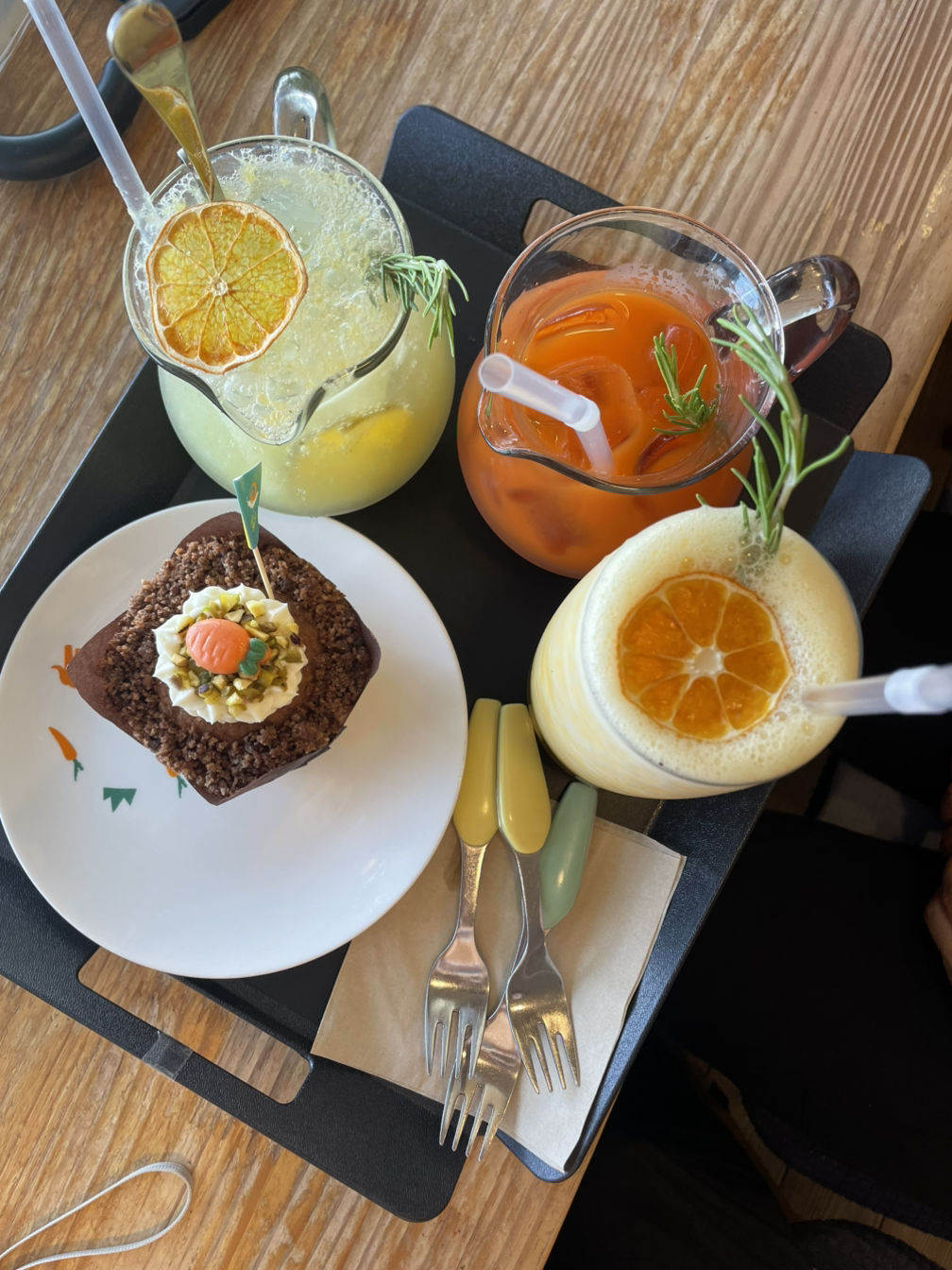 보문사 아래에는 여러 카페가 있는데, 그중 레이지 박스라는 카페에 갔다. 그곳에서 당근 주스, 한라봉 주스, 청귤에이드, 당근케이크를 먹으며 더위를 식혔다.
