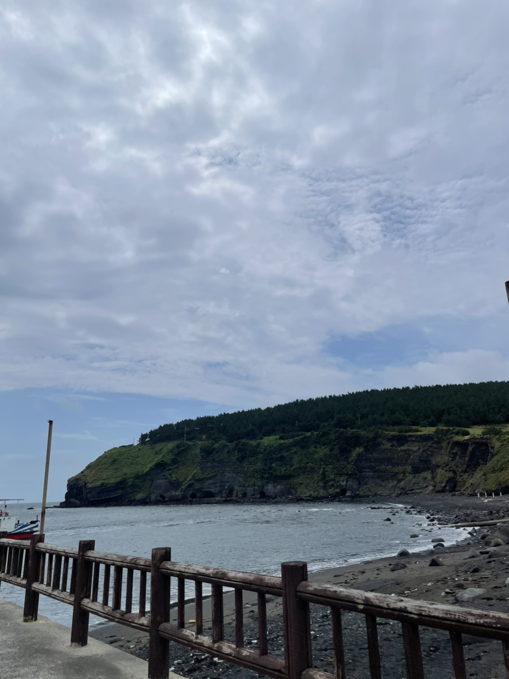 넷째 날, 우리에겐 더 이상 계획은 없었다. 있어봤자 근처의 유명한 음식점, 카페, 관광지만을 찾아봤을 뿐이었다. 전 날 갈치를 거나하게 먹었던 터라 새벽에 일어나 사계해안 주변을 다 같이 뛰자고 계획했던 터라 오전 5시 반에 일어나서 해변 주위를 거닐었다. 보슬비가 내리고 있었다. 온갖 해초, 바다의 짠내가 올라왔다. 이전에 성산일출봉을 올라가서 다리에 피로도 있었던 터라 느슨히 걸었다. 걷다 보니 올레길 10번 코스더라. 아침에 본 사계해안에는 쓰레기가 많았다. 플라스틱, 비닐봉지, 유리병...