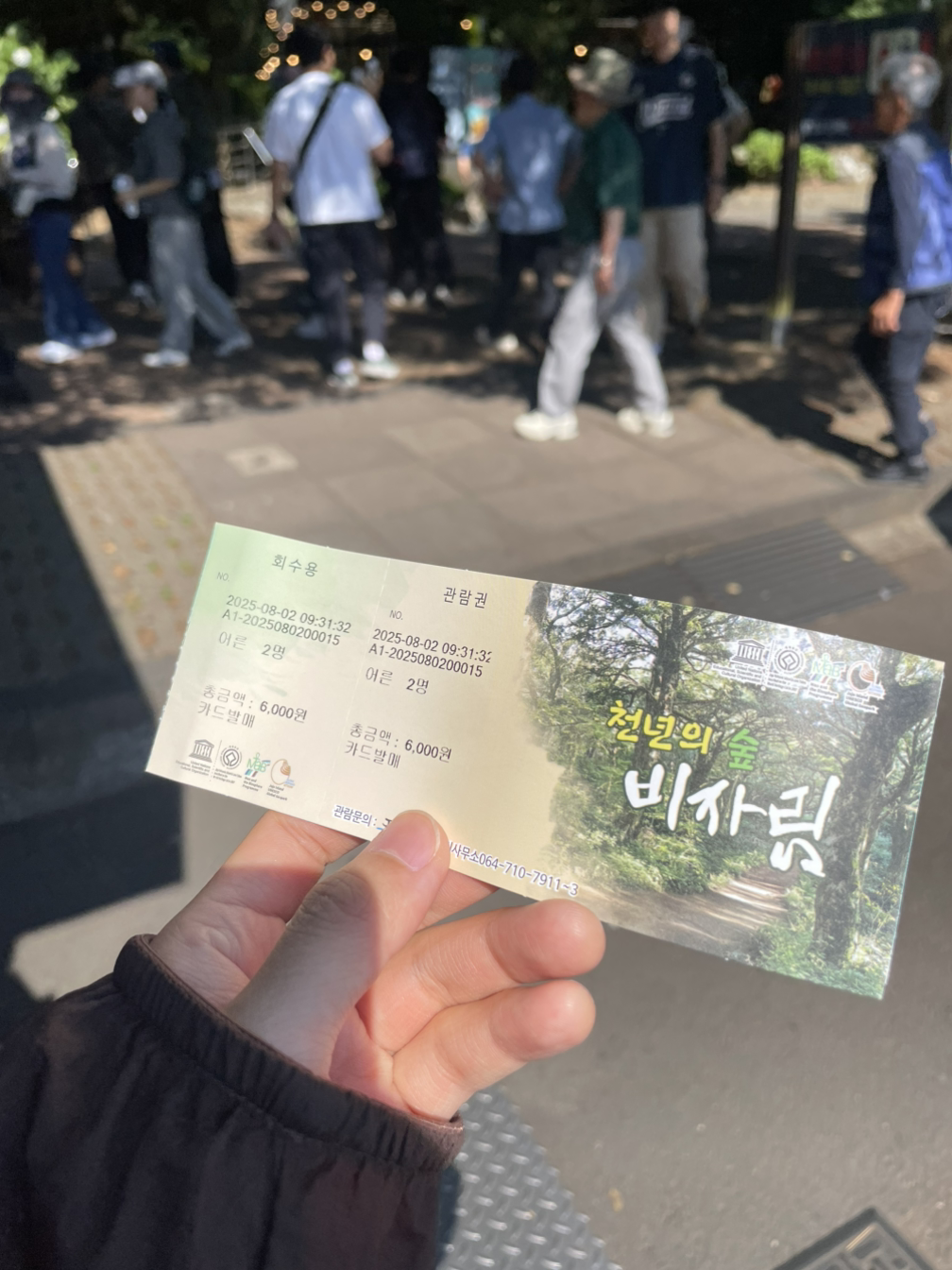 숲 속 해설사 분과 함께 비자림 반을 올라가면서 많은 지식을 얻었다. 비자나무의 열매에 생채기를 내면 상큼한 향이 난다는 것, 비자 열매를 먹을 수 있다는 것, 1년에 1cm 정도 아주 느리게 자란다는 것, 새로 난 가지에서 열매가 열린다는 것, 이니스프리에서 비자열매 향을 사용한 제품이 있다는 것, 곶자왈이 빗물을 조절하는 역할을 해서 제주도는 물난리가 덜 난다는 사실, 천남성이라는 독성 있는 식물이 과거 사약의 재료로 쓰였다는 것, 사약할 때 '사'는 '죽을 사'가 아니라 '하사할 사'라는 것, 제주도는 상하수도 물을 어디서 얻어 쓰는지 등등... 사실상 어린아이들보다 어른들이 더 흥미로워했던 것 같다. 비자나무 열매의 향이 너무 좋아서 바닥에 떨어진 열매를 줍고 다니느라 1시간이면 다 본다는 코스를 엄마와 나는 2시간가량 걸었다.