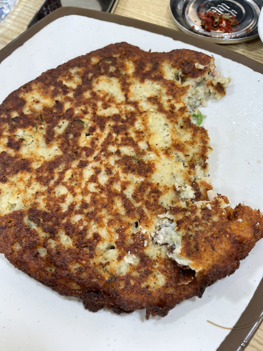 원래는 성게비빔밥을 먹으려고 했으나 배가 고프기도 하고 제주 시내는 차가 밀려서 제주 시내에 있는 고사리육개장을 먹으러 갔다. 1시간 정도 기다려서 먹은 고사리육개장은 참 맛있었다. 낯설지만 부드러운 식감이 아직도 생각난다. 뜨겁게 하려면 삼킬 때 목구멍이 데일정도로 뜨겁게 만들 수도 있을 것 같은데 - 마치 매생이 국처럼 - 온도조절을 기가 막히게 잘하셔서 뜨끈하게 후루룩 넘길 정도였다. 녹두 빈대떡도 주문해서 먹었는데 겉은 바삭하고 속은 촉촉했다. 추석 때 직접 치대서 굽는 동그랑땡과 식감이 비슷했다.