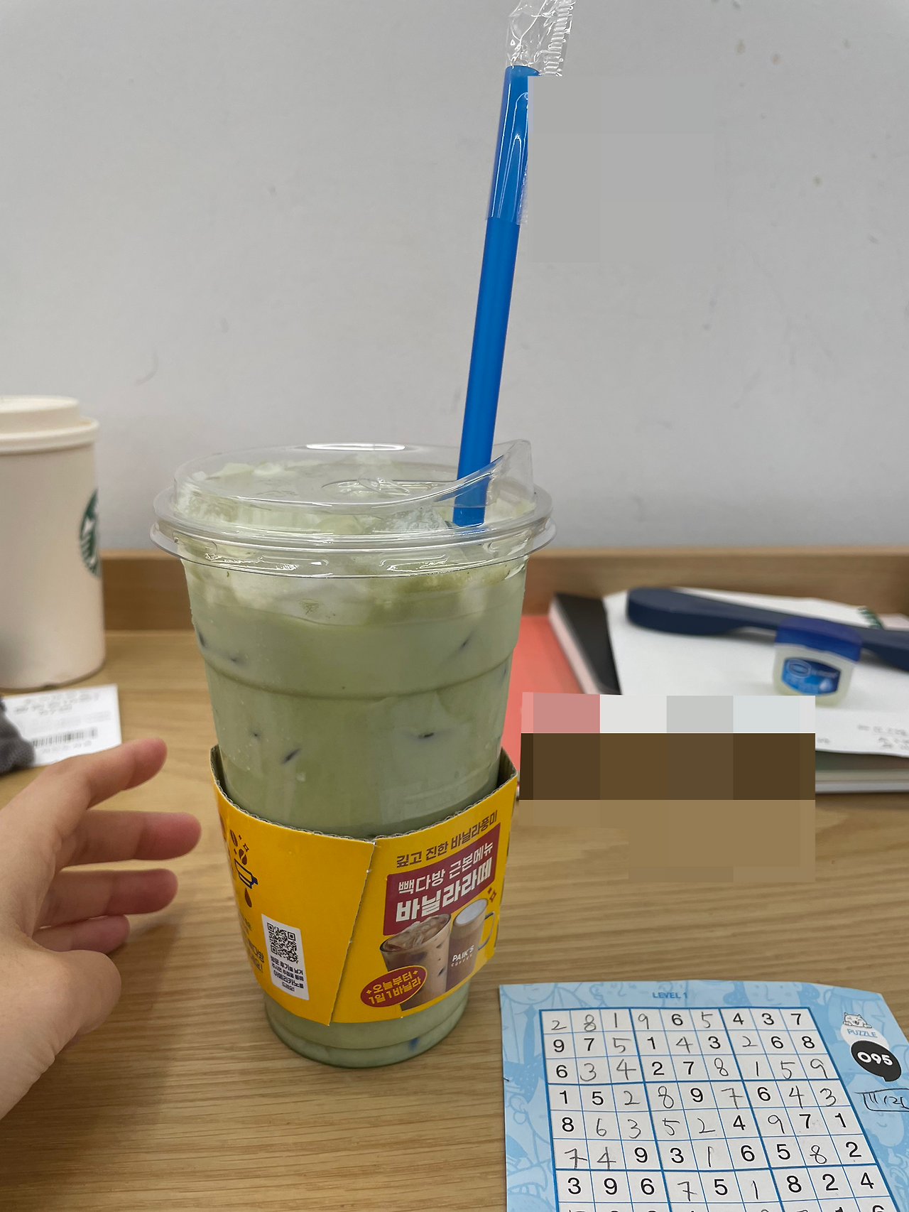 오늘 아침에는 날이 살짝 흐렸는데 도서관에 도착한 지 10분이 채 되지 않아 비가 쏟아졌다. 점심을 안 먹는 대신 하루 종일 먹을 녹차라테 한 잔과 반납해야 할 책 여러 권을 들고 있던 터라 이동 중에 비가 오지 않은 것이 다행스러웠다.