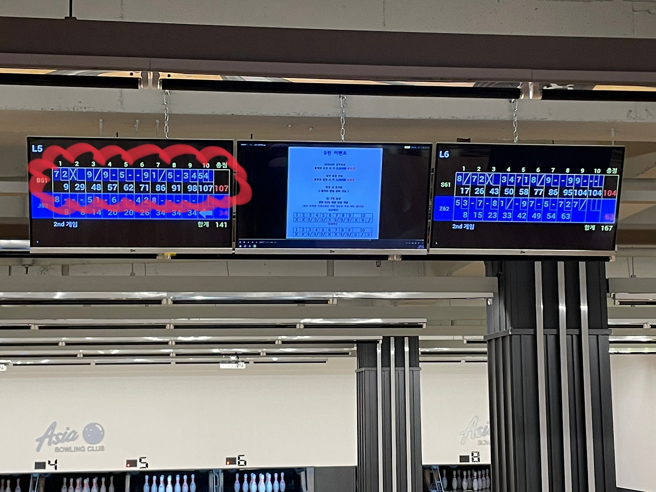 처음 쳐봤을 때 13점, 두 번째 볼링 치러 간 날 최대 점수 107점을 찍었고, 그리고 오늘 86점을 쳤다. 처음엔 어색하고 잘 치고 싶어서 소심하게, 뭘 어딜 보고 공을 굴려야 하는 건지 몰랐는데 이제는 대충 공을 가운데로 보내려면 어딜 봐야 하는지 정도는 안다.