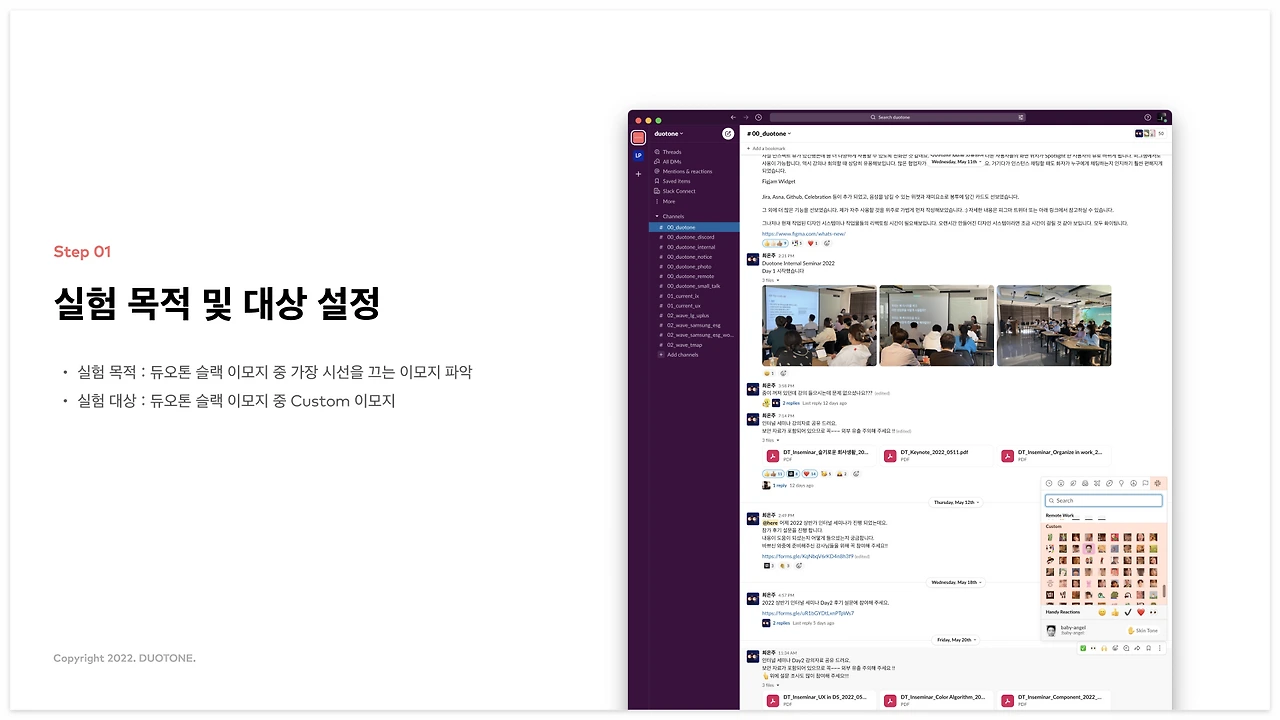 ‘듀오톤 슬랙 이모지 중 가장 시선을 끄는 이모지는 무엇일까?’라는 재밌는 실험입니다.