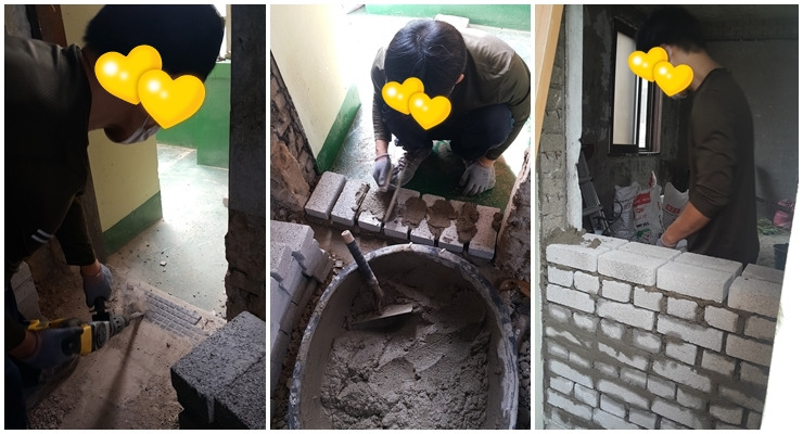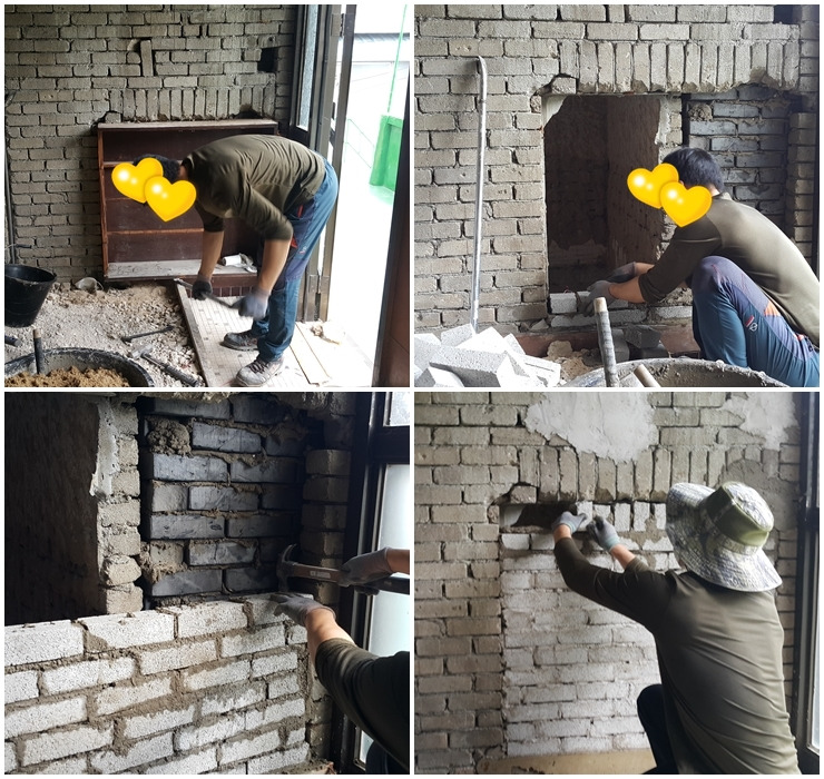 처음 해보는 시간이니 그러겠다 싶었다. 아는 만큼 보인다더니 이 시간 후로 벽돌을 쌓는 곳만 보면 유심히 보는 습관이 생겼는데 오히려 남편이 쌓은 벽돌이 더 잘 쌓아진 것처럼 보였다. 내 남편이 진정한 금손인 걸까? 아니면 내 눈에 콩깍지가 안 벗겨진 것일까?