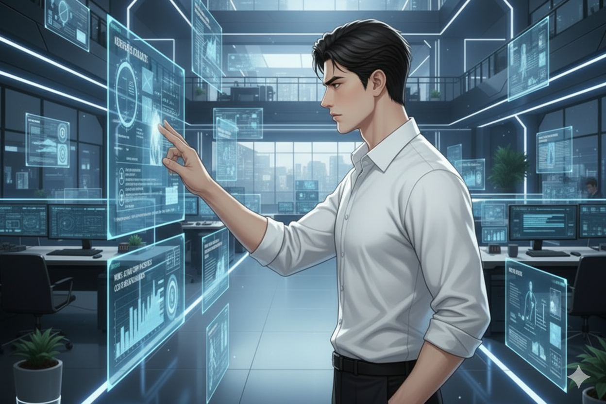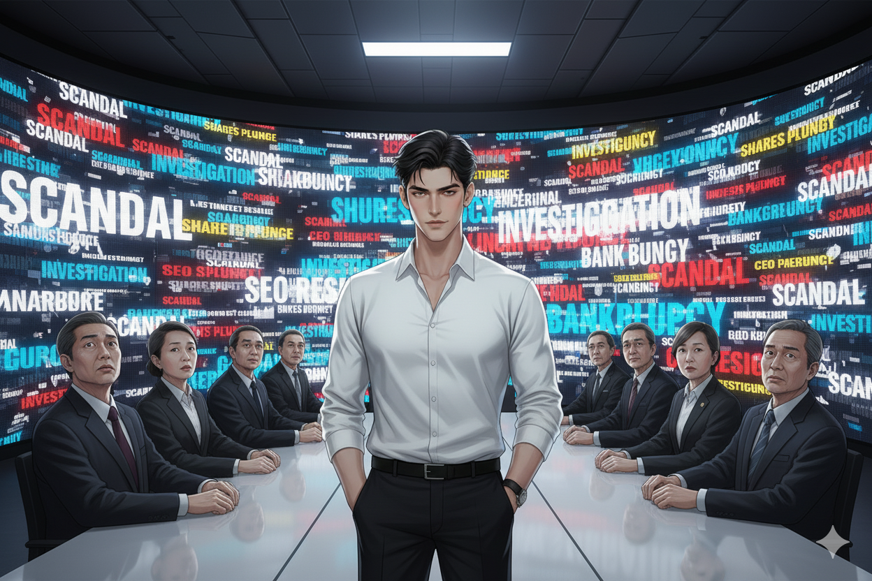 임원들은 사색이 된 채 회의실 스크린에 떠 있는 기사 헤드라인만 바라보고 있었다. 하지만 강지혁은 무심했다. 그는 나른하게, 그의 가늘고 긴 손가락으로 홀로그램 속 기사들을 느릿느릿 넘기고 있었다. 마치 남의 회사 이야기를 읽는 사람처럼.