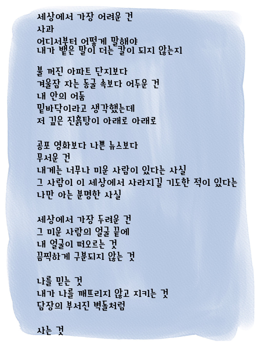 마지막 두 행 사이에는 여백이 있습니다. 무엇을 위한 쉼일까.