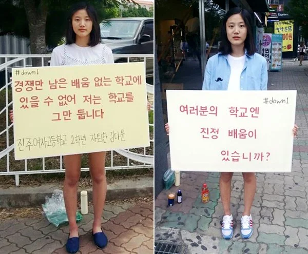 진주여고를 2015학년도에 자퇴한 김다운 학생의 학교 방문 시위