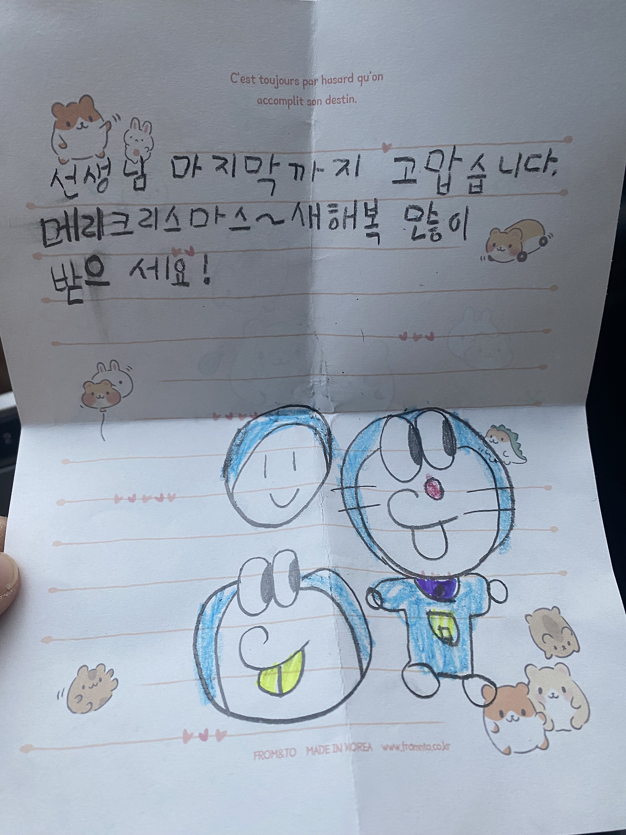 이번 달로 마지막 수업을 한 어머니가 선물을, 아이가 편지를 써 건네받아 돌아오는 길에 코 끝이 찡해온다.