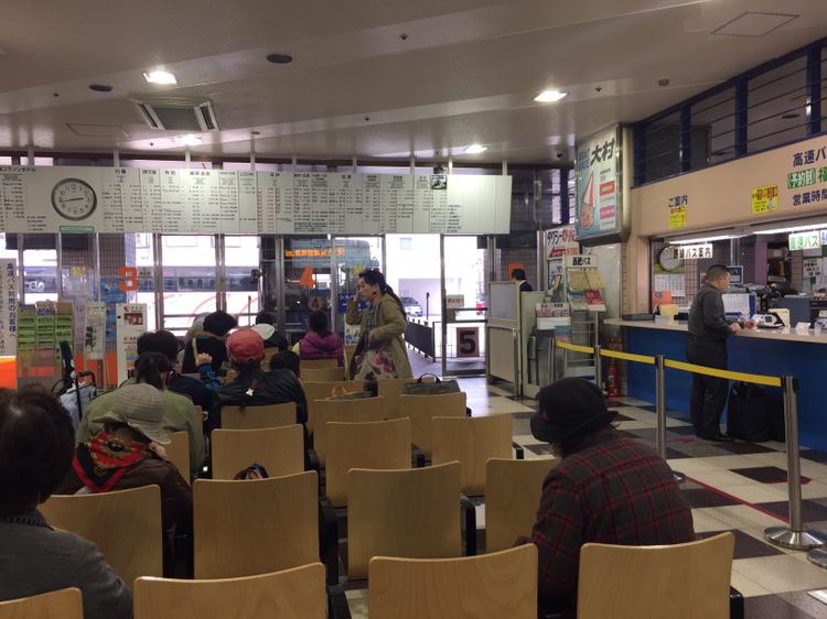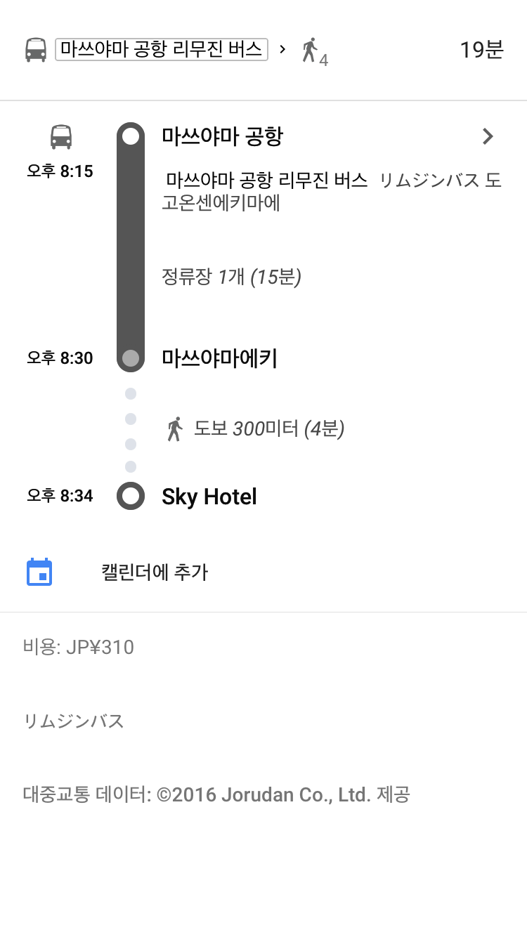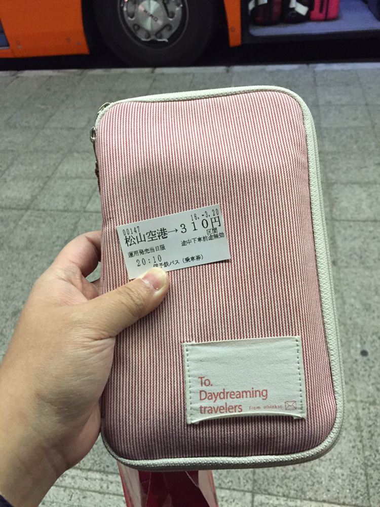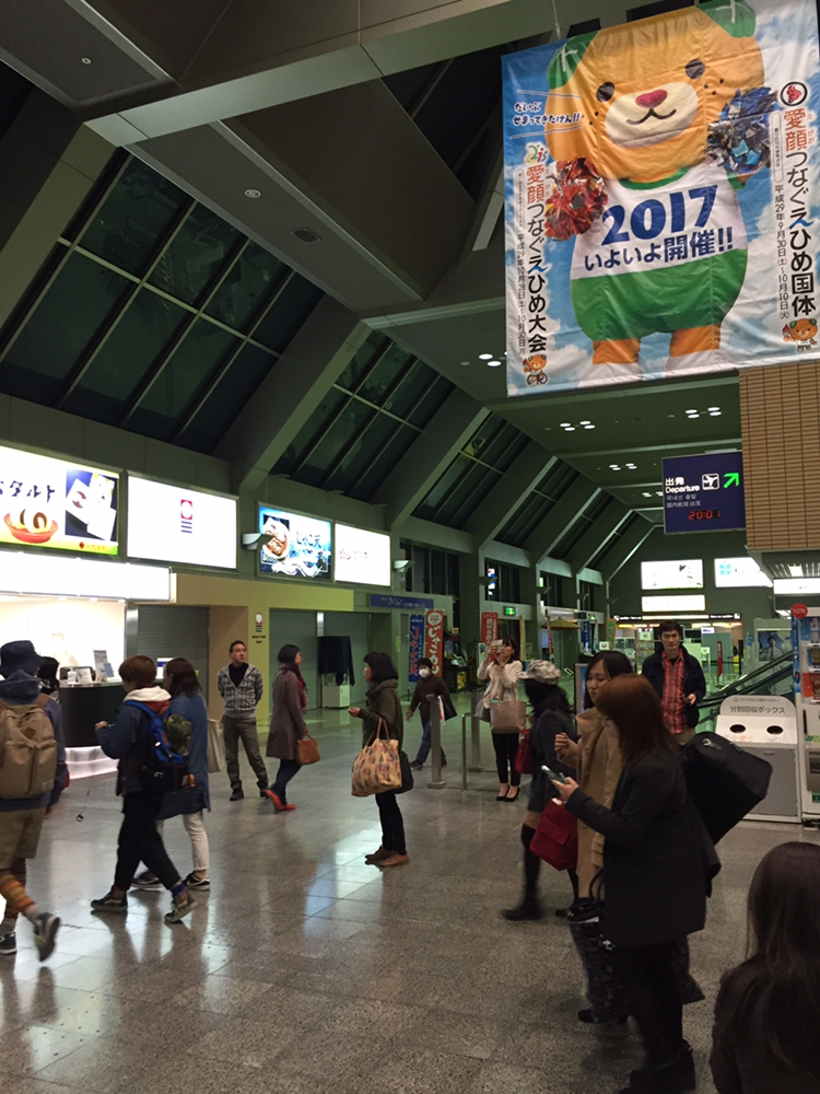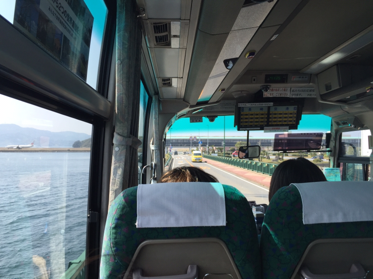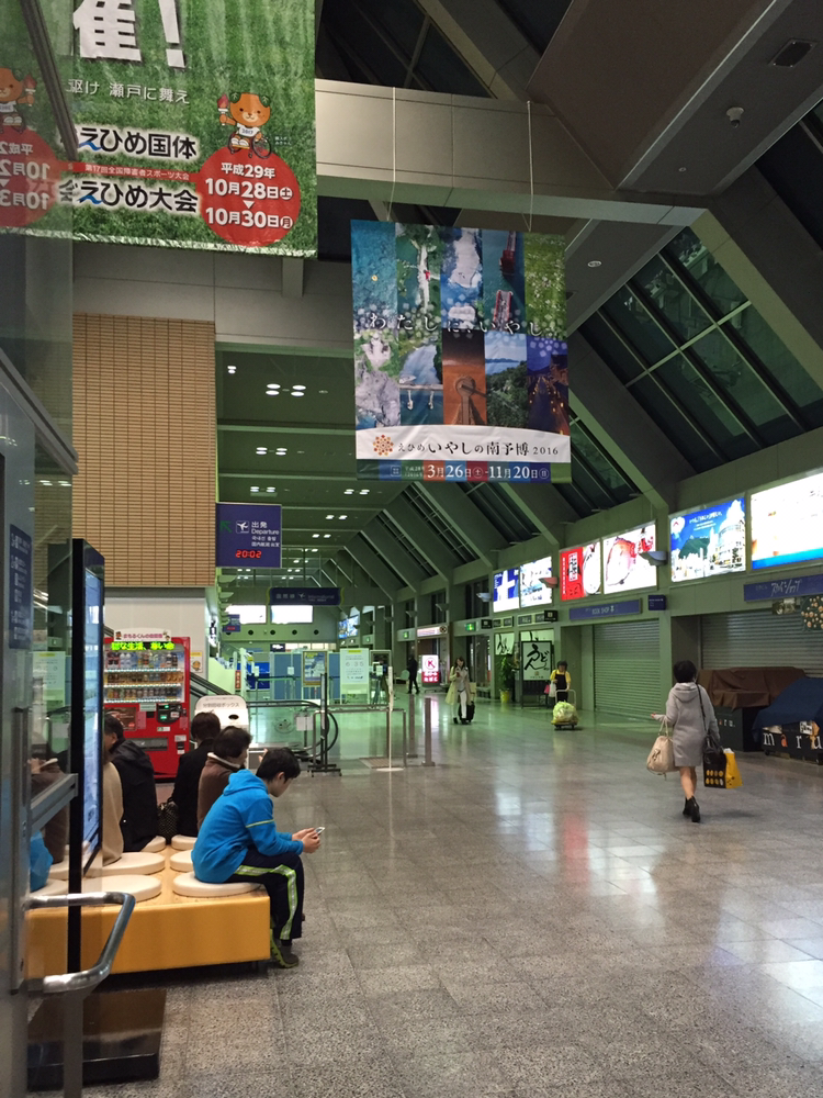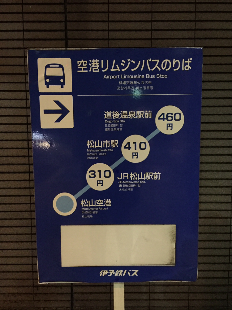 공항에서 나와 마쓰야마역까지 가는 리무진 버스 탑승 후 역 앞 버스 정류장에서 하차