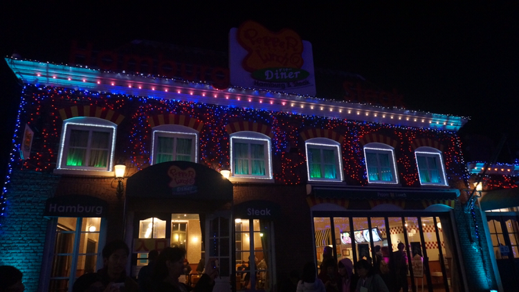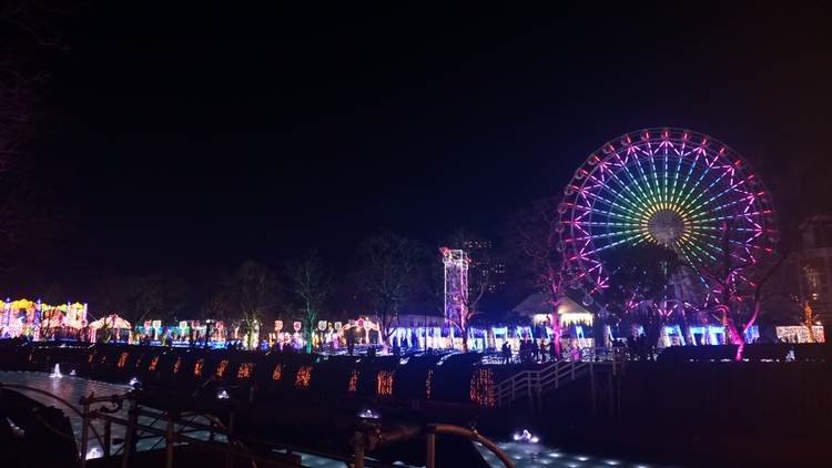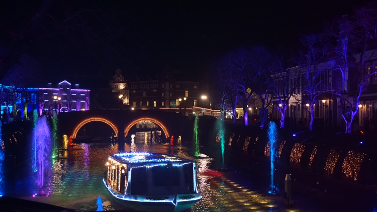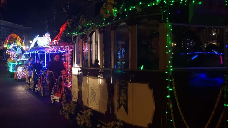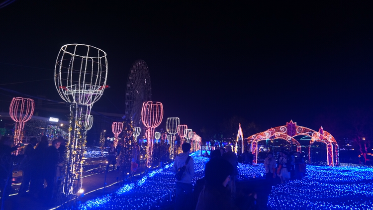 저녁으로 허기진 속을 달래며 나가는 길 쪽으로 가는데 또 한 편의 일루미네이션 장관이 펼쳐진다!
