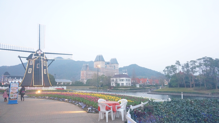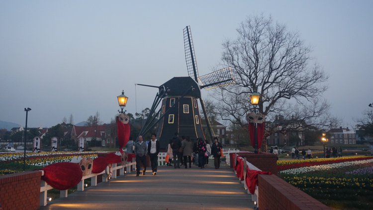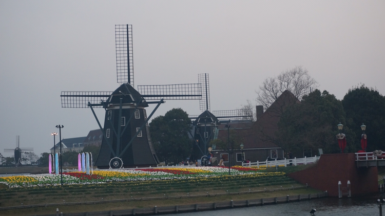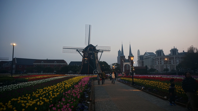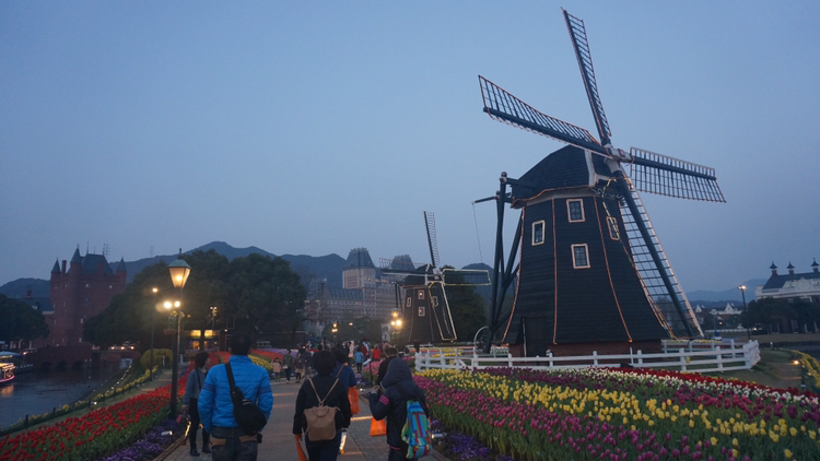 하우스텐보스는 일본에 네덜란드를 옮겨놓은 것처럼 꾸며놓은 테마파크라고 하는데 그래서 그런지 입장하자마자 튤립이랑 풍차가 전면에 배치되어 있다!