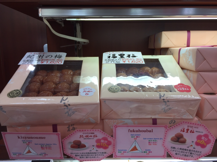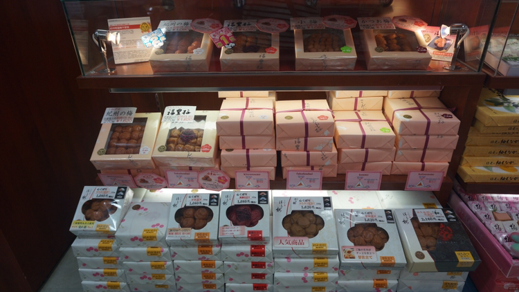 서둘러 기념품 파는 곳에 가니 우메보시가 있는데 염도가 엄마 말대로 각양각색이다!