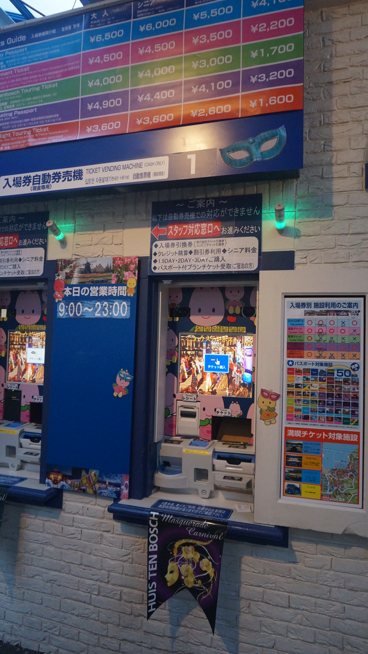 암튼 셔틀에서 내려 6시 넘어 입장할 수 있는 입장권 일루미네이션 티켓 자동판매기에서 구매