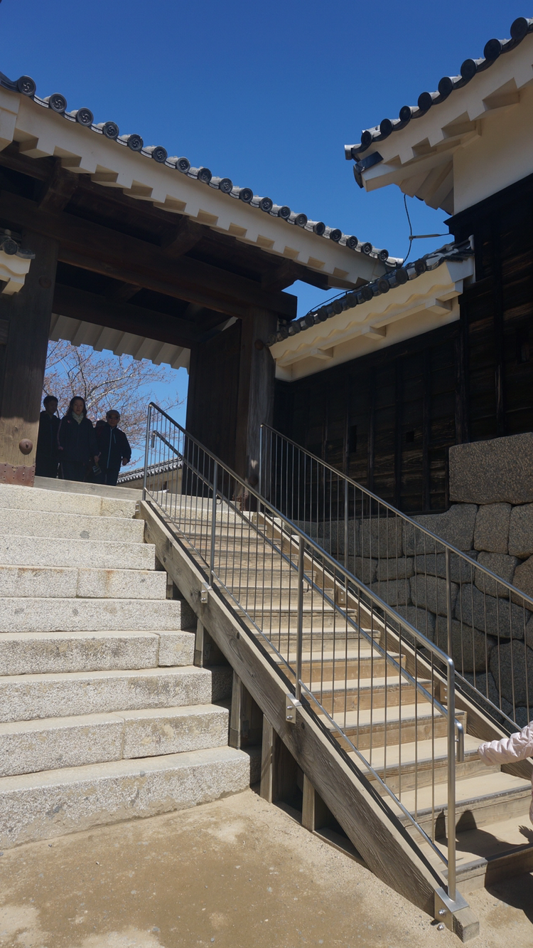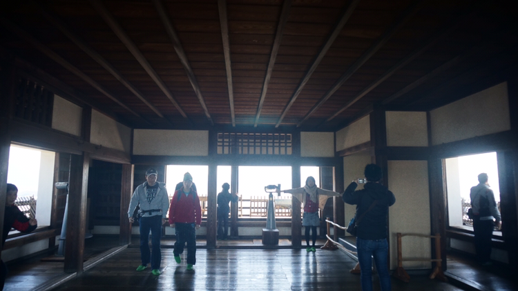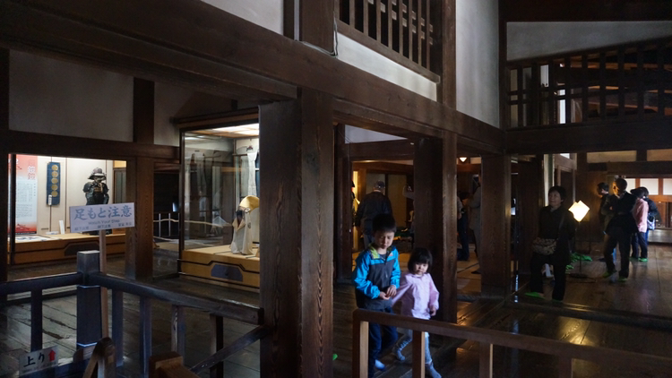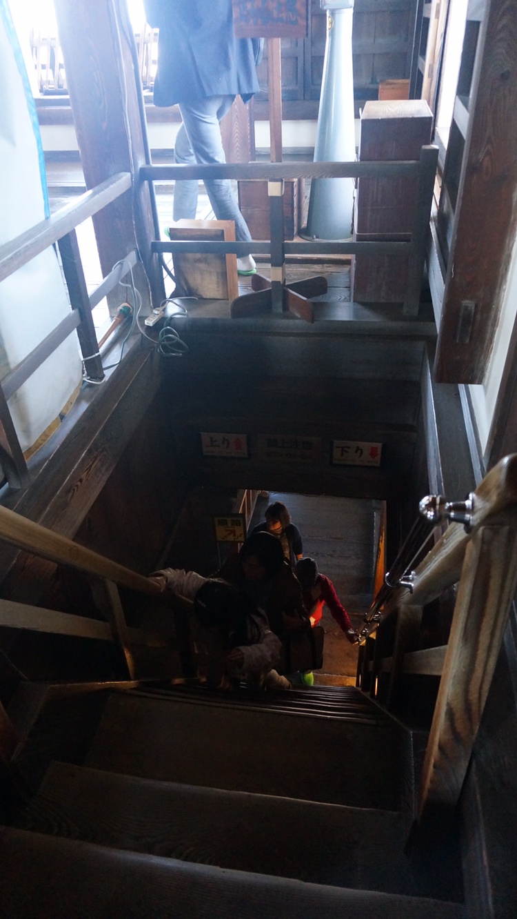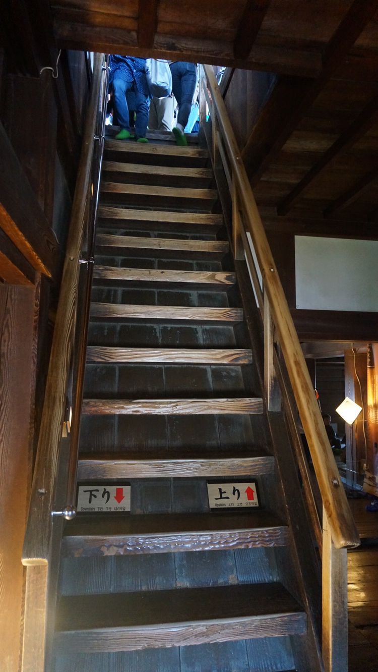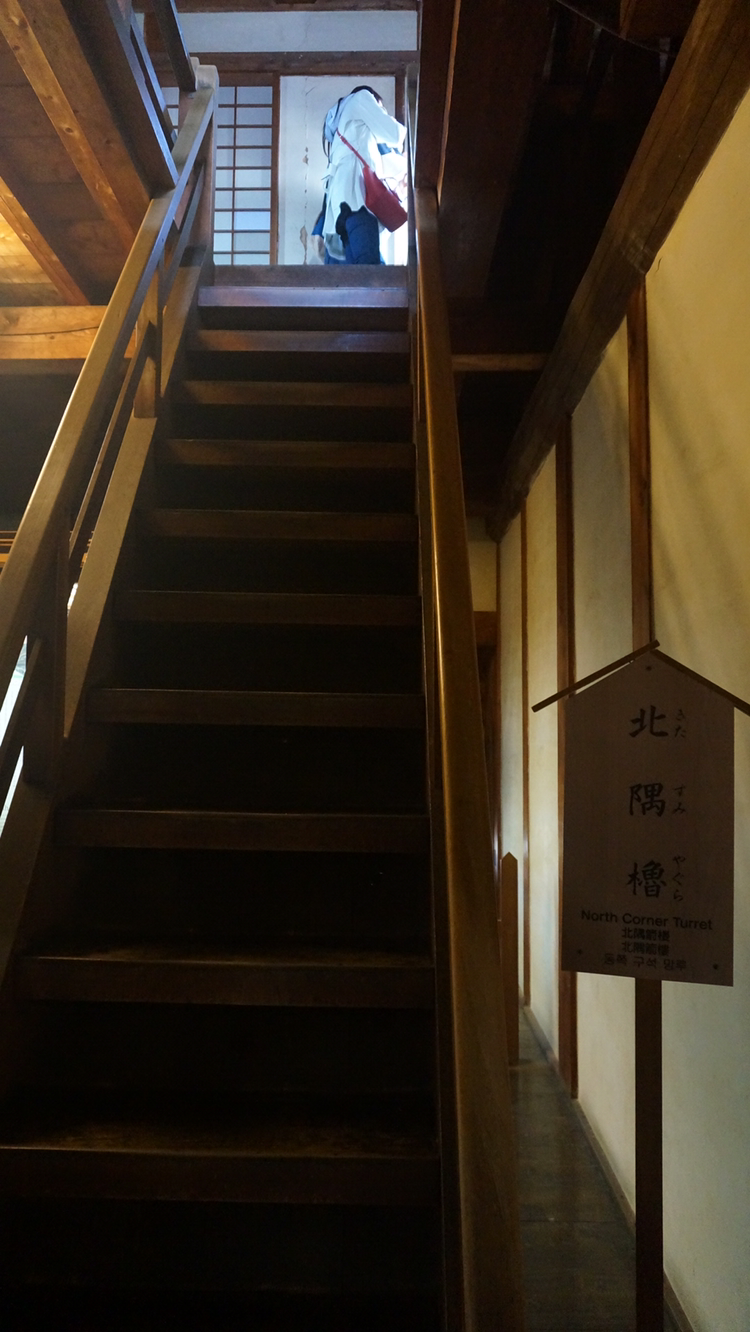 천수각은 3층까지 있는데 경사가 급하고 좁은 계단을 계속 오르내려야 한다~!