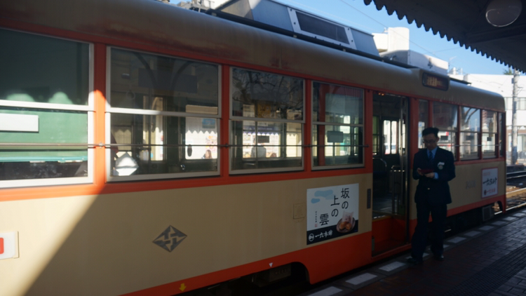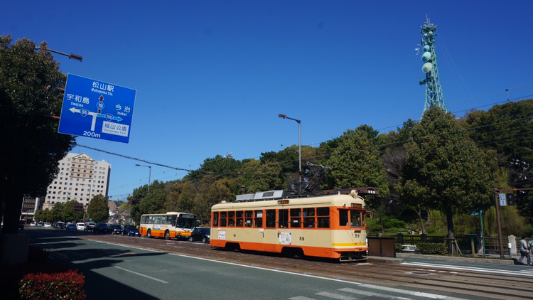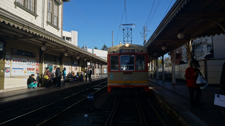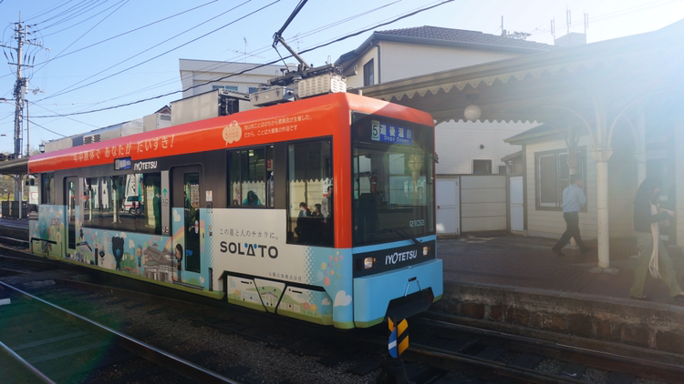 쇼핑몰로 다시 걸어가 코인락커에서 짐을 찾고 도고 온천까지는 걸어갈만한 거리였지만 이미 많이 걸었기에 160엔을 써서 노면전차를 타고 종점인 도고온천역에서 내렸다!