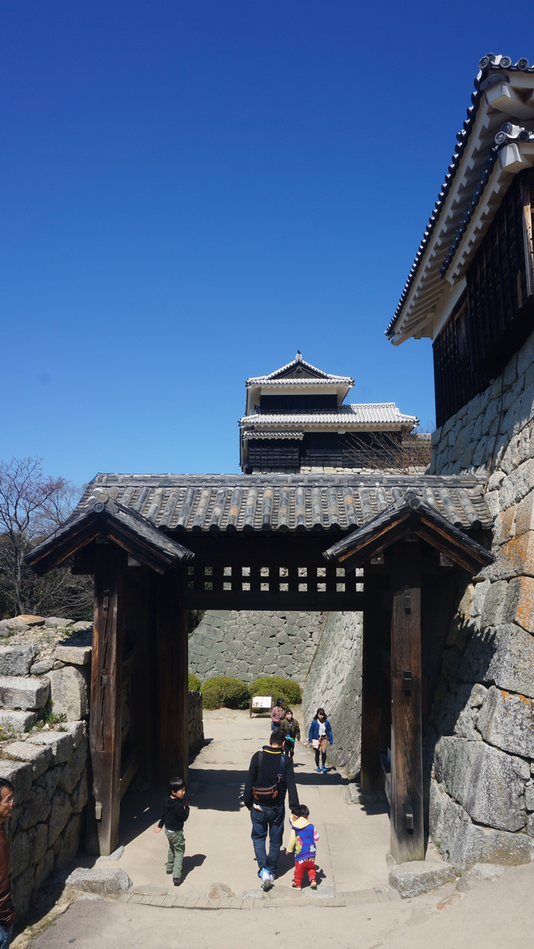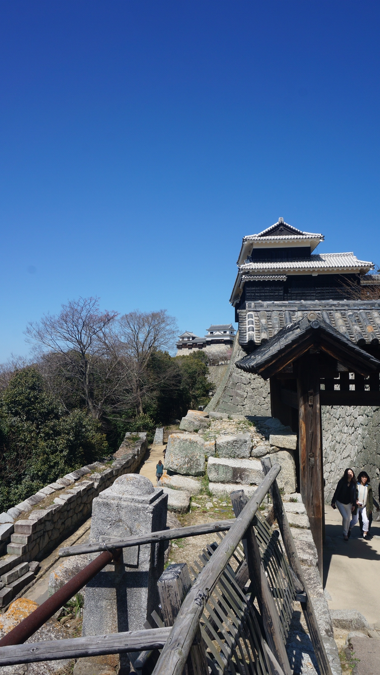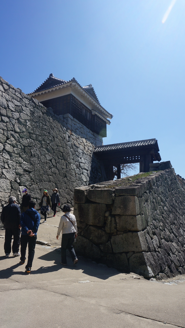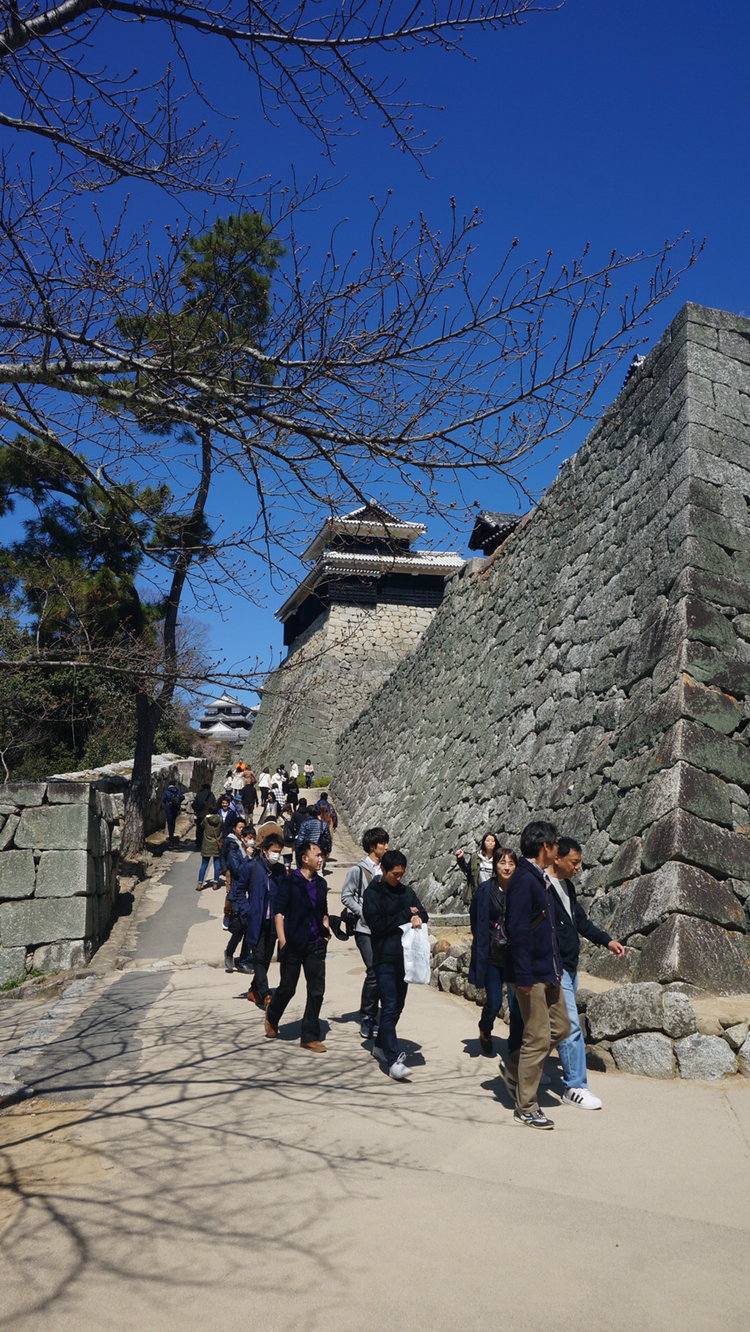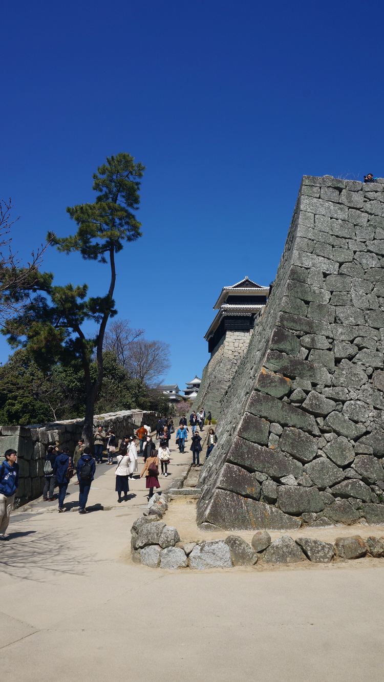 드디어 구경을 모두 마치고 계단을 다시 내려와 천수각을 나와 신발을 찾아 신고 마쓰야마 성을 배경으로 혼자 사진을 다시 한 번 찍었다~!