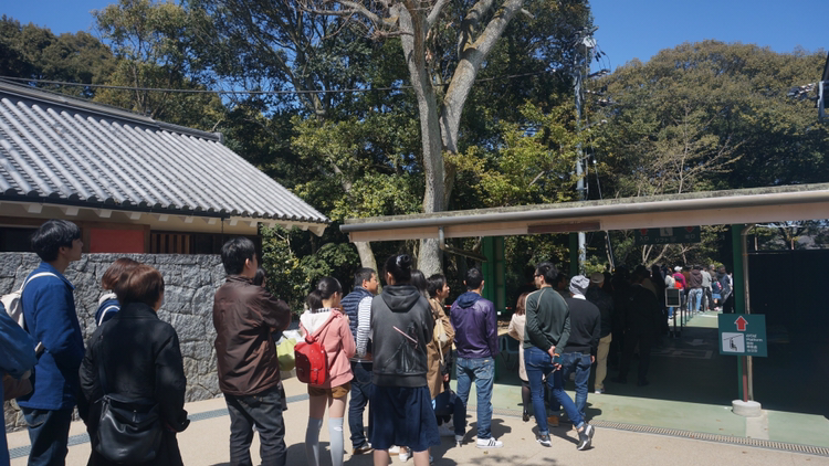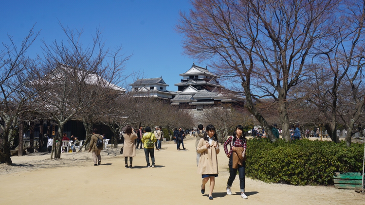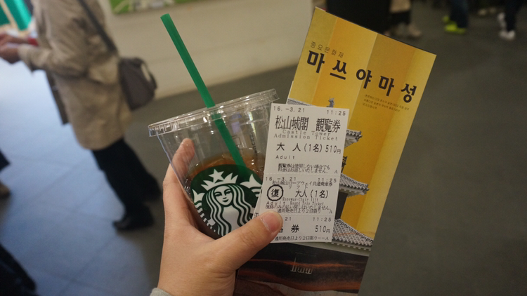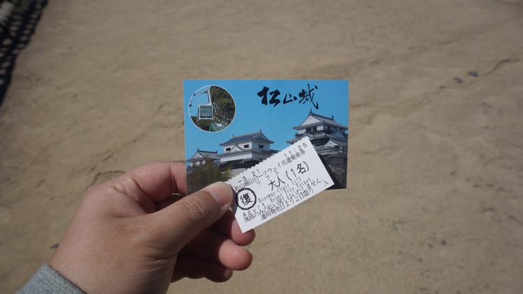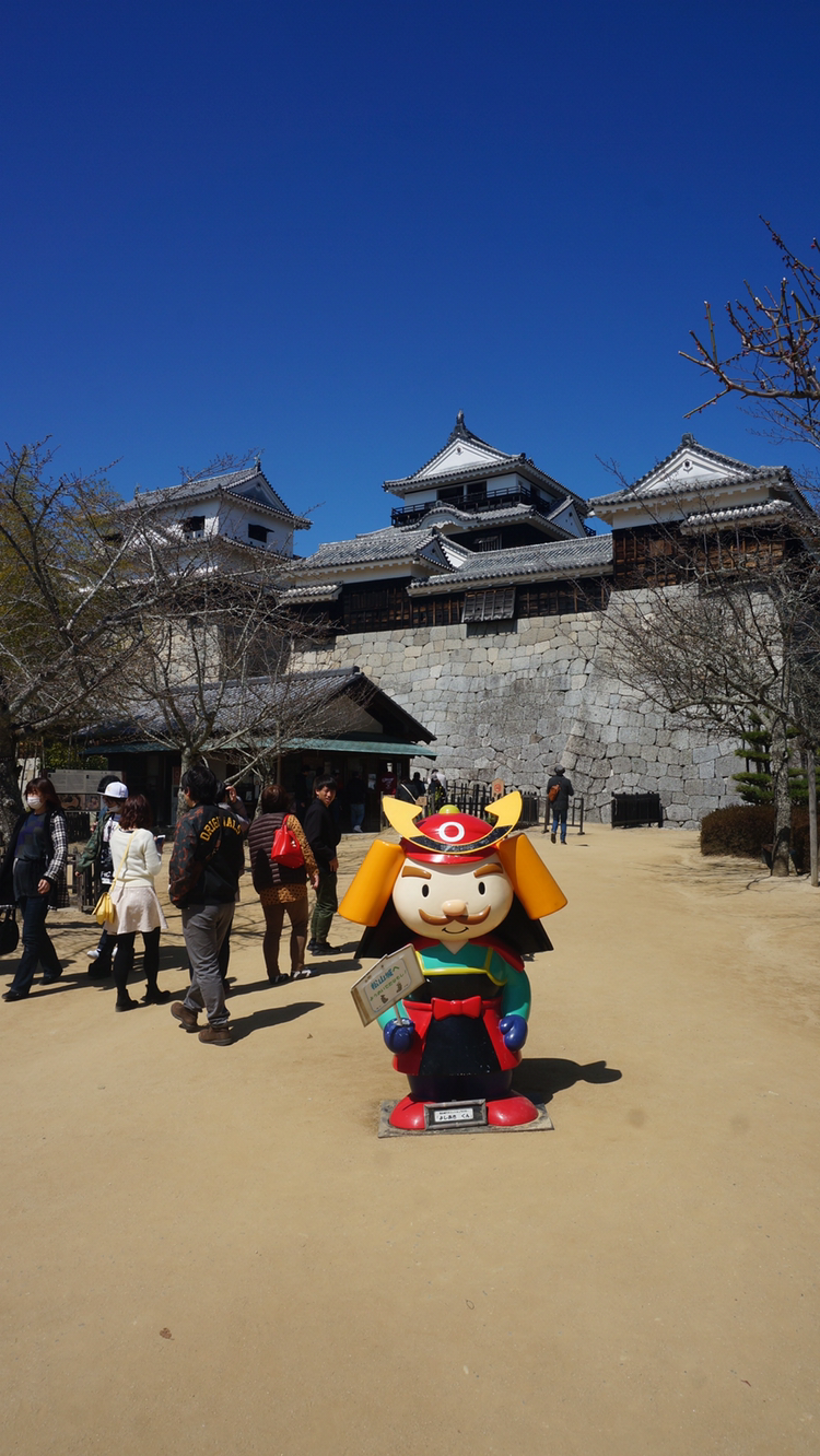 일요일이라서 그랬는지 인증샷을 찍을 수 있도록 마쓰야마 성을 배경으로 사진을 찍어주는데 조금 줄을 서니 바로 내 차례가 돌아왔다!