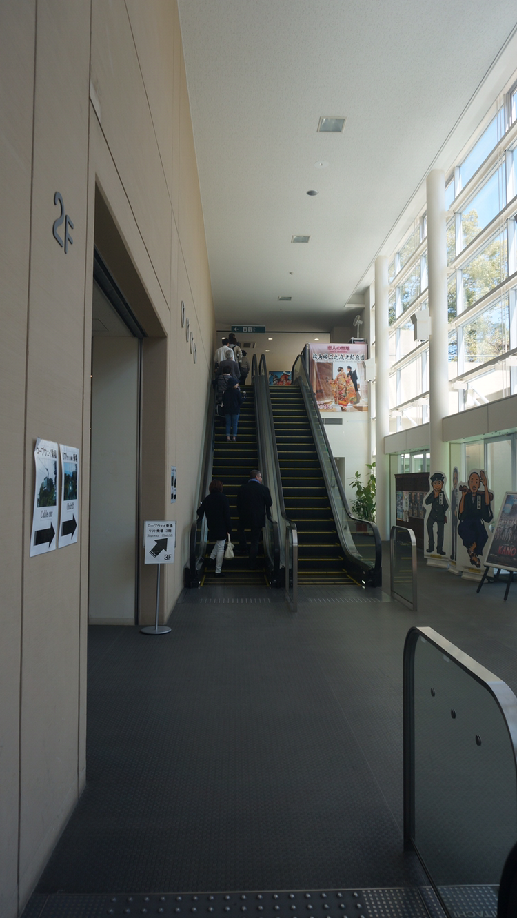 티켓을 구매한 1층에서 벤딩 머신이 있는 쪽으로 꺾으면 리프트 타는 곳으로 올라갈 수 있는 에스칼레이터가 나오고 2층은 전시실, 3층은 1인용 리프트와 케이블카를 탈 수 있는 곳으로 되어 있다!