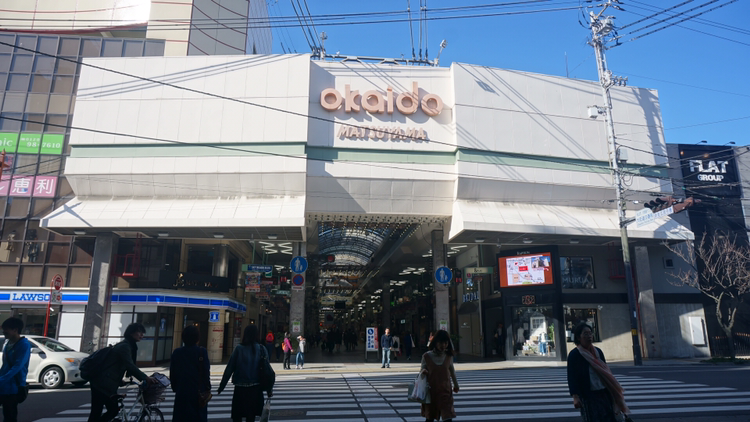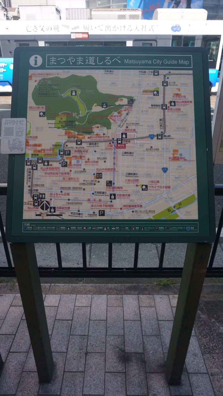 가는 길에 전차도 보고 봇짱 열차도 보고 마쓰야마 공원도 지나쳐 시청을 거쳐 짐을 보관할 코인락커가 있는 쇼핑몰 건물까지 도착!