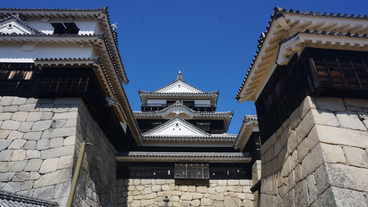 현존하는 천수 중 가장 최근에 지어진 것으로 히메지 성, 와카야마 성과 함께 일본 3대 연립식 평산 성으로 알려져 있다고 한다.