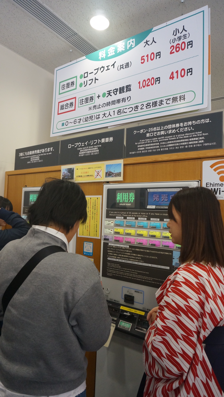 안으로 들어가 왕복 리프트와 천수각 입장이 가능한 복합 티켓을 1,020엔을 써서 구매!