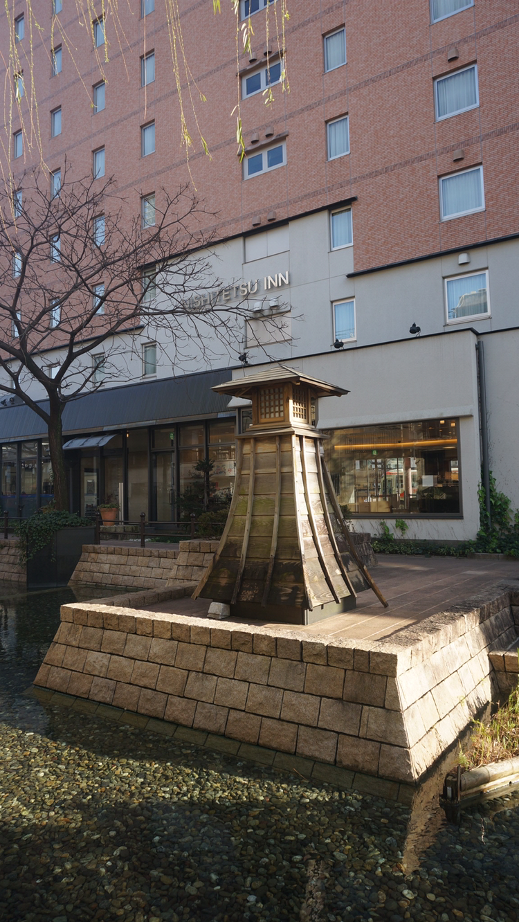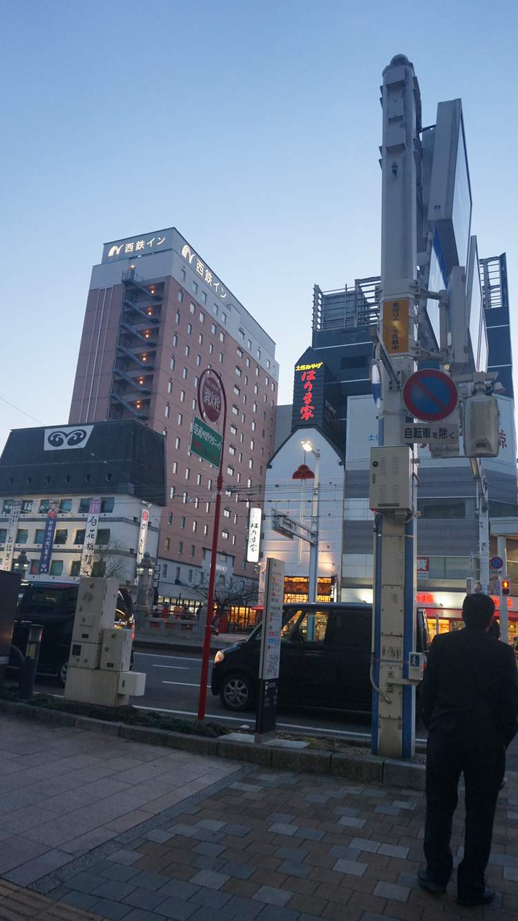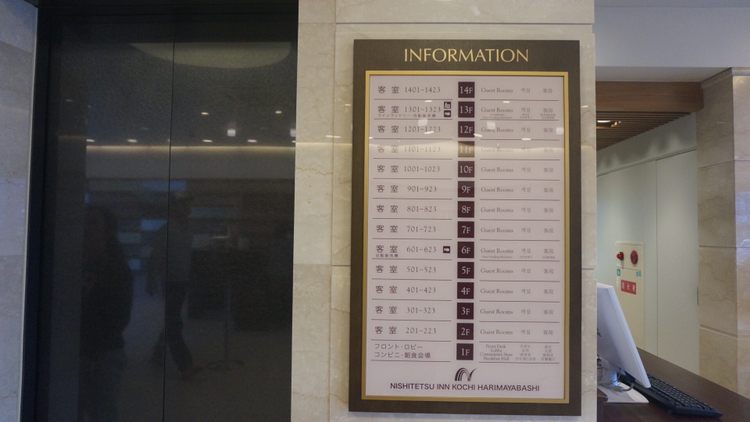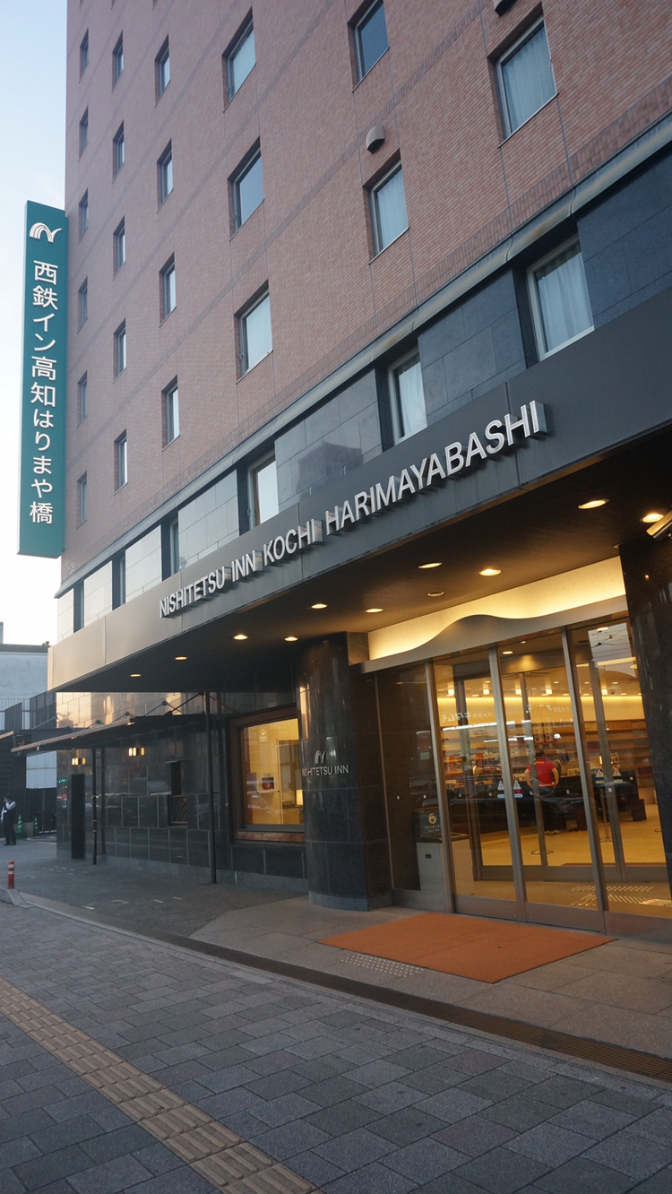 JR고치역 앞 버스 정류장에서 내려 호텔까지는 도보로 10분 정도 소요된다~!