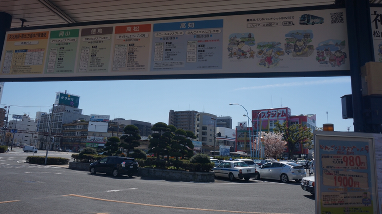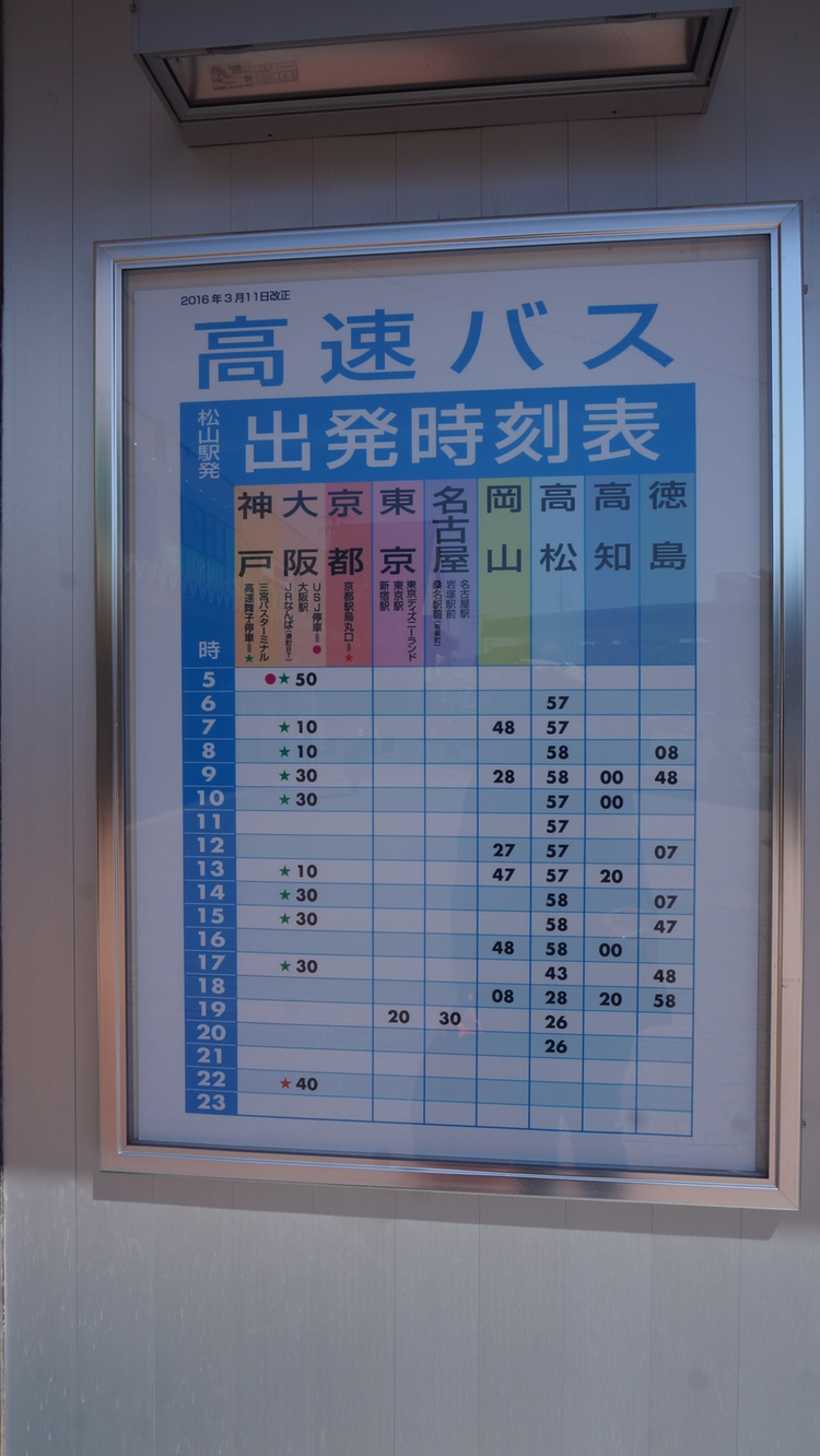 JR마쓰야마역 앞 고속버스 터미널로 이동한 다음 버스 시간 확인 후 티켓 구매