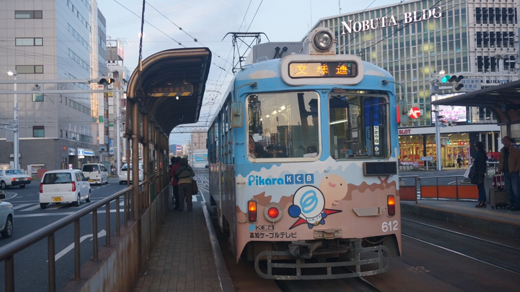 어느 정도 시간이 지나고 편의점에서 삼각김밥을 사서 점심을 때우고 시간에 맞춰 버스 정류장 앞에서 기다렸다가 JR고치역까지 가는 버스에 몸을 실었다!