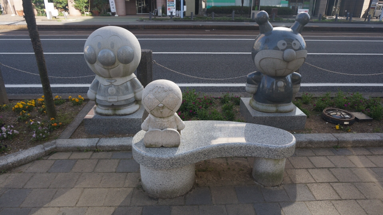 계속 걸어가다 보면 우리에게도 친숙한 애니메이션 호빵맨의 주역들을 동상으로 만나볼 수 있는데 이쪽에서는 호빵맨을 앙빵만이라고 부르는 듯하다!