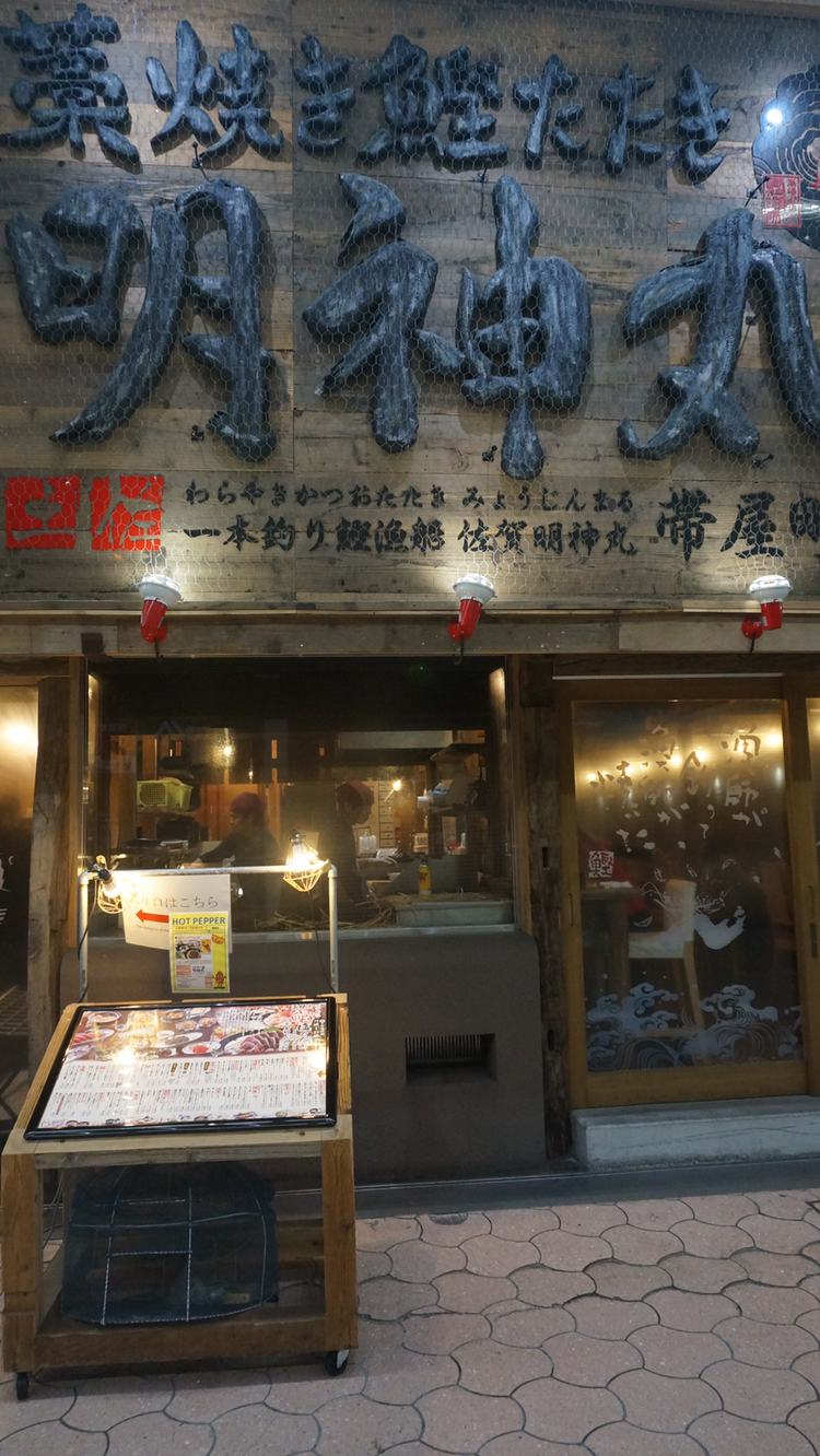 히로메 시장에서 먹은 타다키 말고 제대로 된 타다키를 한 번 먹어보고 싶은데 오는 길에 보니 기다리는 사람들이 있어서 어쩔까 주변을 맴돌면서 추이를 살피던 중 언제 또 와보겠나 싶어 용기 내어 타다키 전문점으로 보이는 묘진 마루에 들어갔다!