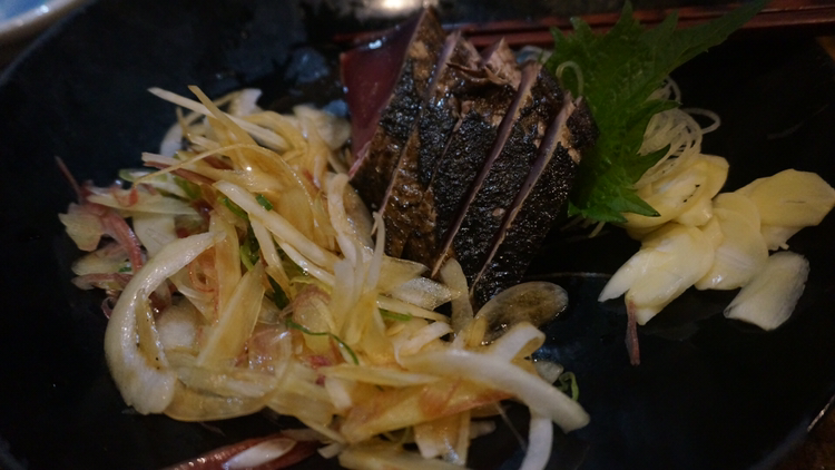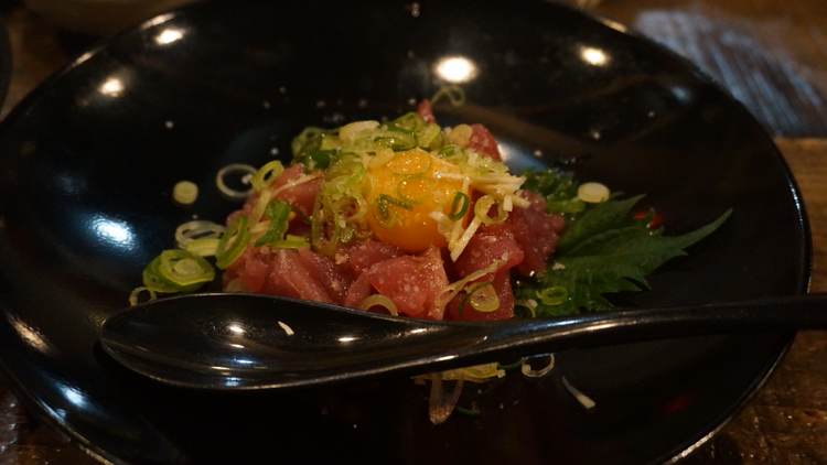 그리고 다음으로 주문한 육회 같은 것이 나왔는데 육회가 고기를 이용한 거라면 이 메뉴는 생선회를 얇게 썰어 그 위에 소금을 뿌리고 달걀노른자를 올려 섞어서 먹는 형태로 입안에서 고소한 맛이 살살 녹았다! 여행 일정 다 끝내고 한국 돌아가면 꼭 한 번 만들어 먹어보고 싶은 맛이다!