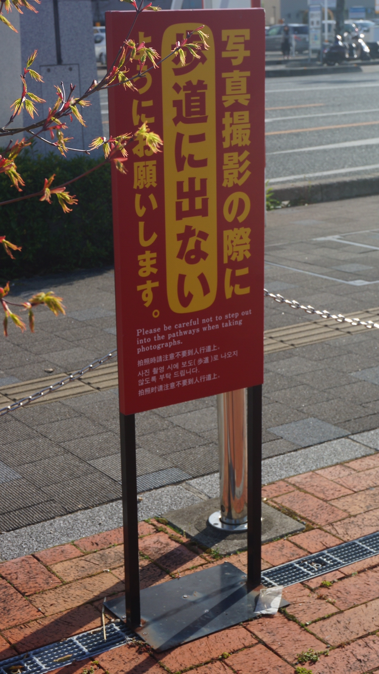 JR고치역 앞에 3명의 인물 동상이 있는데 찾아보니 순서대로 다케치 한페이타, 사카모토 료마, 나카오카 신타로 NHK 대하드라마 '료마전' 기념으로 지어졌다고 한다. 그 앞에는 한글로 사진 찍는다고 도로로 나오지 말라는 안내판도 볼 수 있다!