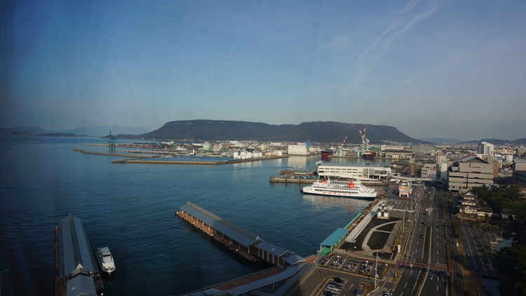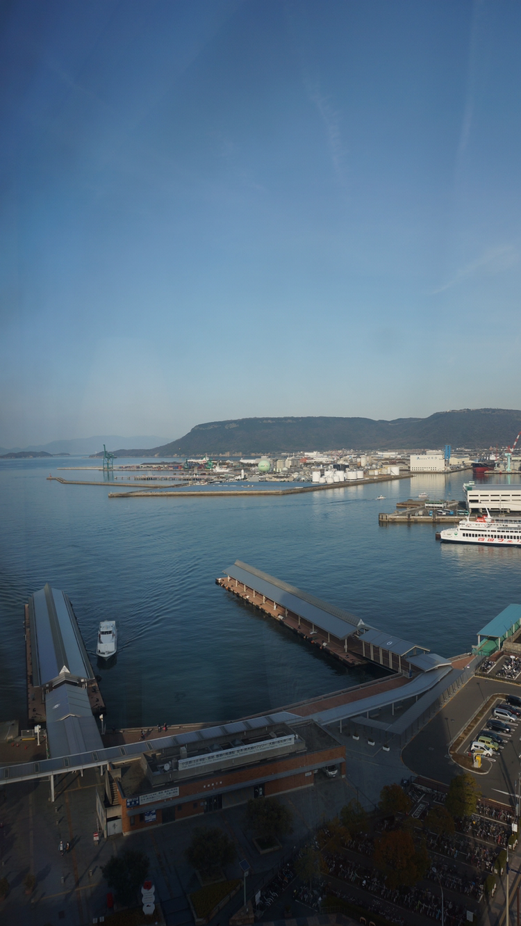 바다 뷰라서 선착장이랑 바다 끝까지 다 보이고 시내도 한눈에 들어온다!