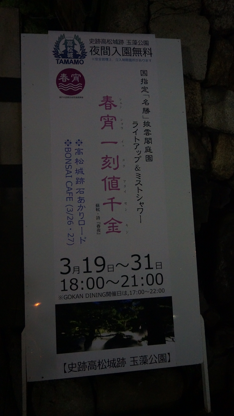다마모 공원은 다카마츠항 [高松港] 바로 남쪽에 인접해 있고 다카마츠성은 북쪽은 바다와 접해있고 나머지 삼면은 바닷물을 끌어들인 해자로 둘러싸인 일본 3대 수성 중 하나라고 한다.